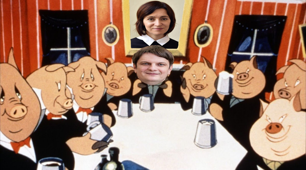 В начале XX века немецкий социолог Роберт Михельс вывел так называемый «Железный закон олигархии», который гласит, что любая демократия рано или поздно вырождается в олигархию – вид автократии, когда государственная власть находится в руках немногих и несменяемых. Следующая за этим стадия – диктатура. Думается, что олигарх и вице-председатель PAS Andrei Spînu в перспективе имеет все шансы стать диктатором. И кого тогда будет интересовать вопрос, на сколько фракций распадётся правящая партия, и останутся ли вообще в Молдове партии? Но уже сейчас можно смело согласиться с мнением экономиста V. Ioniță, что власть нынешних молдавских олигархов, а-ля A. Spînu, по сути, ничем не отличается от времён «захваченного государства» олигархов Илана Шора и Владимира Плахотнюка – фигурантов знаменитого дела «О краже миллиарда». И как тут не вспомнить финальную сцену из повести Джорджа Оруэлла «Скотный двор»: «Животные переводили взгляд с людей на свиней и со свиней на людей, и не могли понять, где люди, а где свиньи». Занавес!