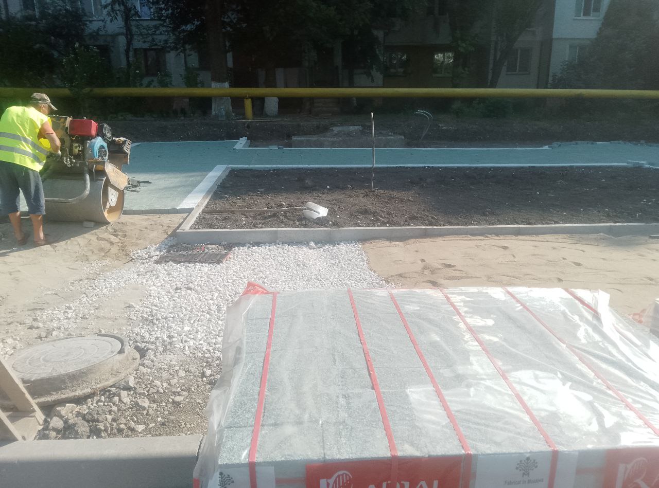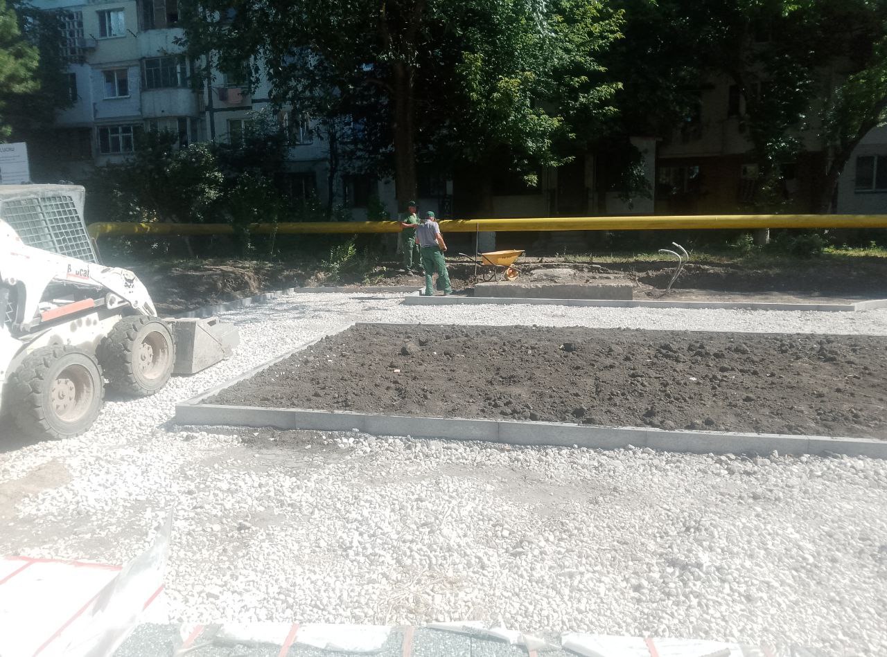 Lucrările la amenajarea zonei verzi, care s-a numit „Piața Familiei”, includ îndepărtarea vechilor și instalarea bordurilor noi, îndepărtarea vechiului strat de asfalt de pe trotuare, montarea mobilierului stradal și, bineînțeles, plantarea vegetației.