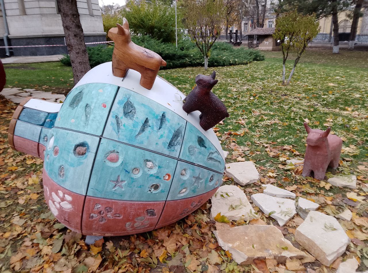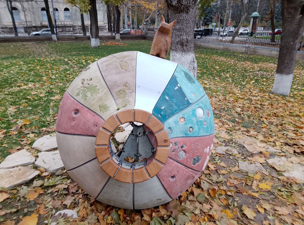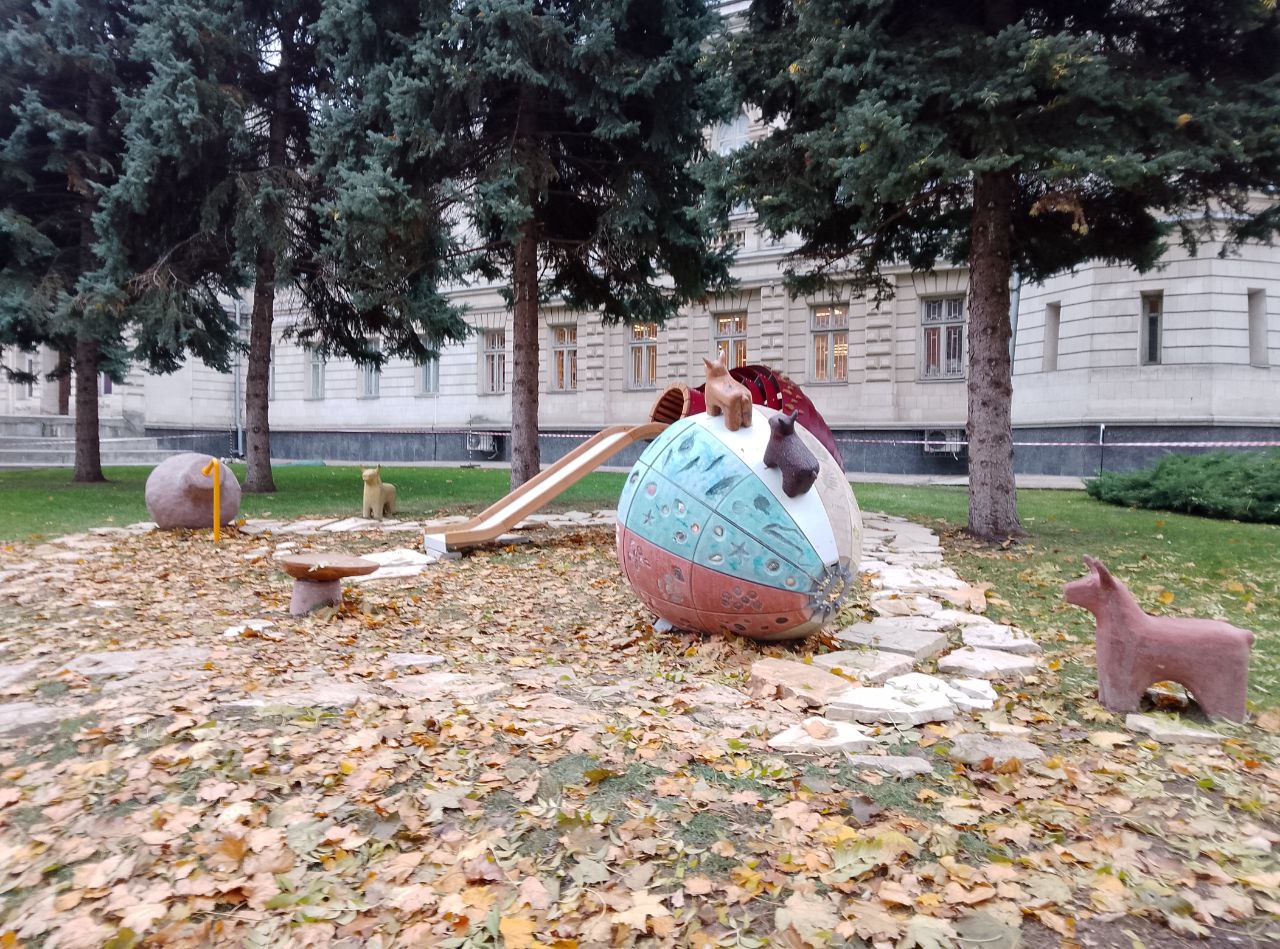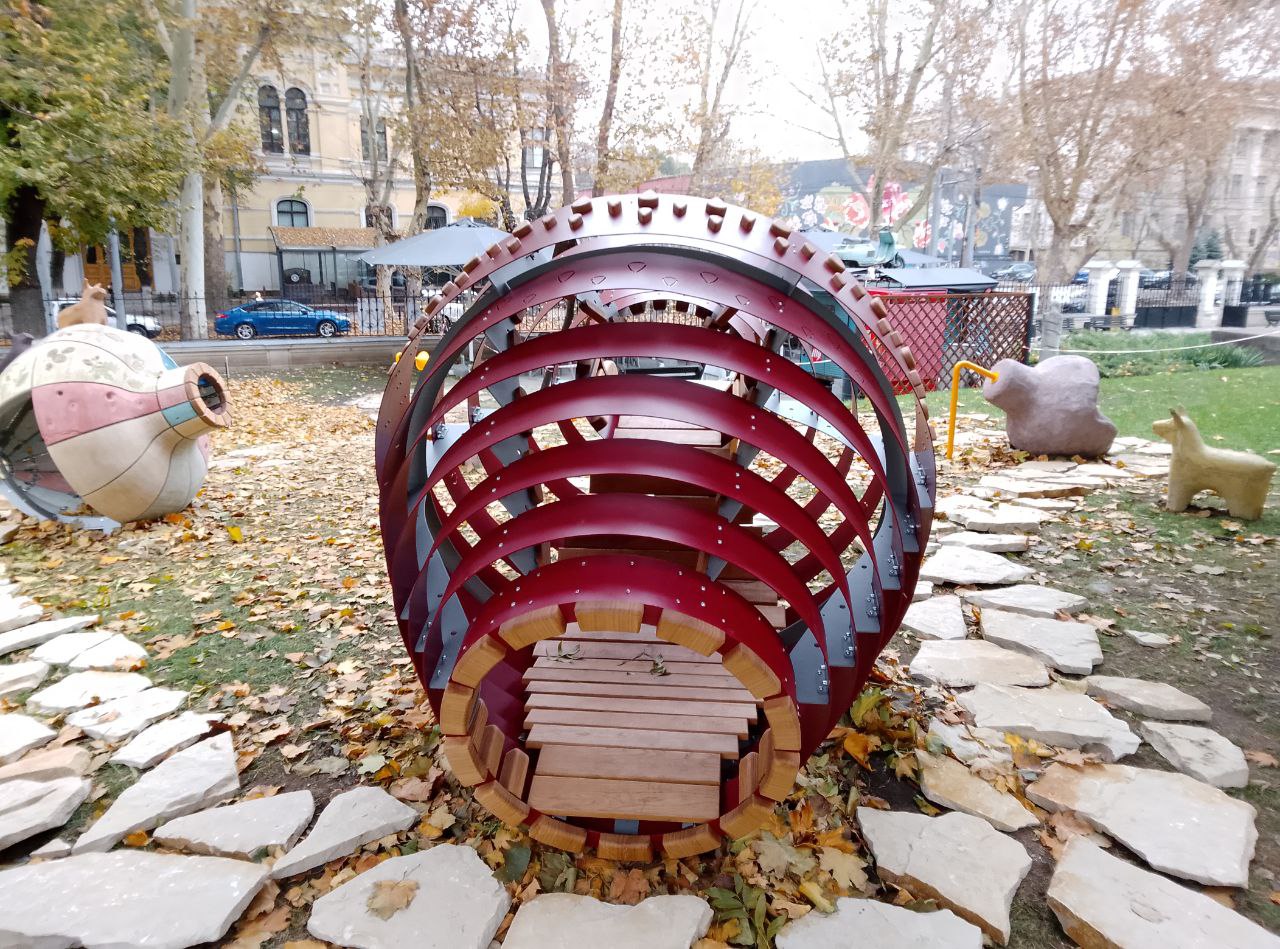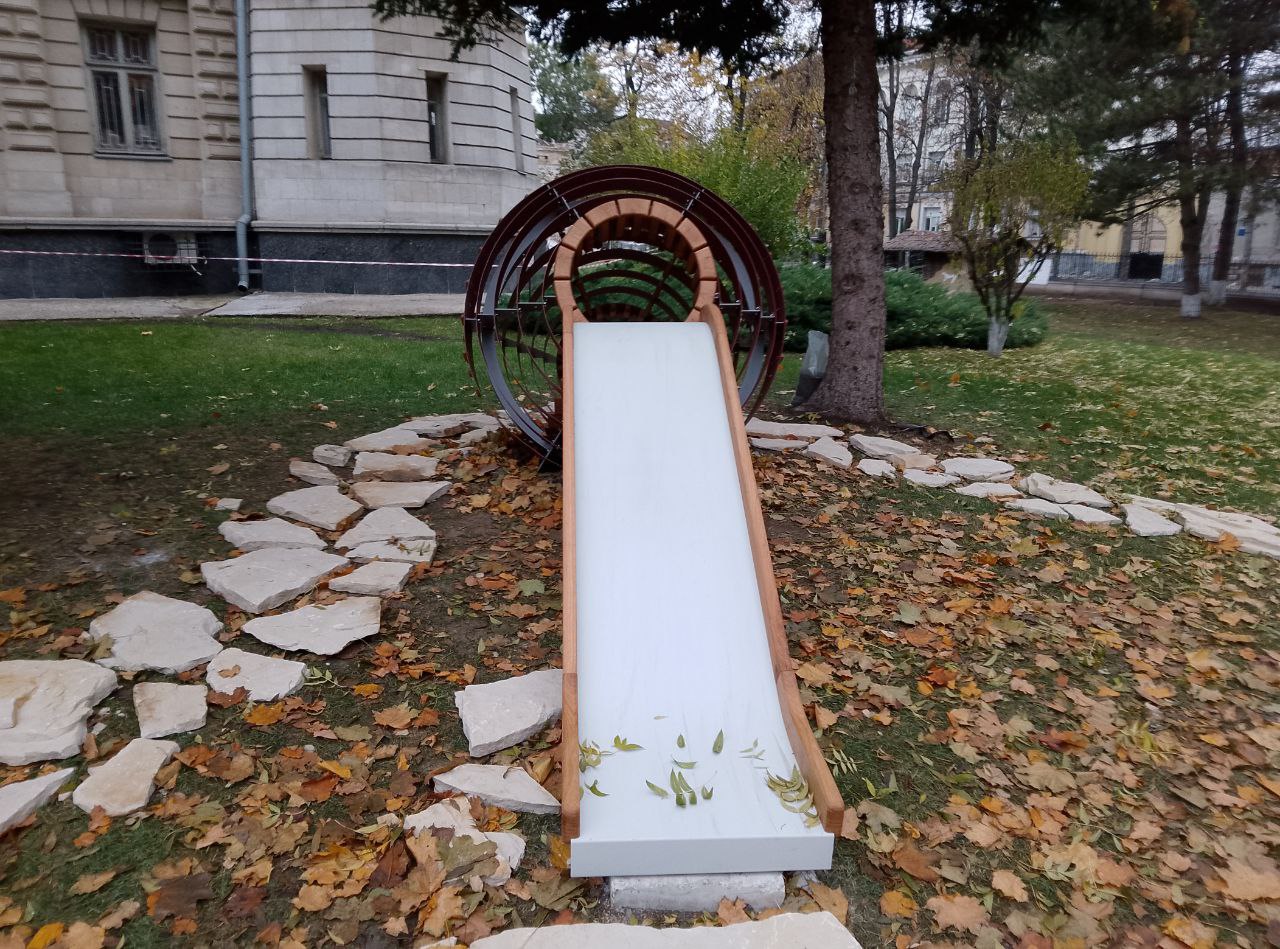 Compoziția spațială reprezintă modele sferoconice de vase și jucării de lut din epoca de piatră din colecția muzeului istoric. Potrivit organizatorilor proiectului, designul ar trebui să încurajeze generația tânără să fie interesată de istoria și cultura țării lor.
