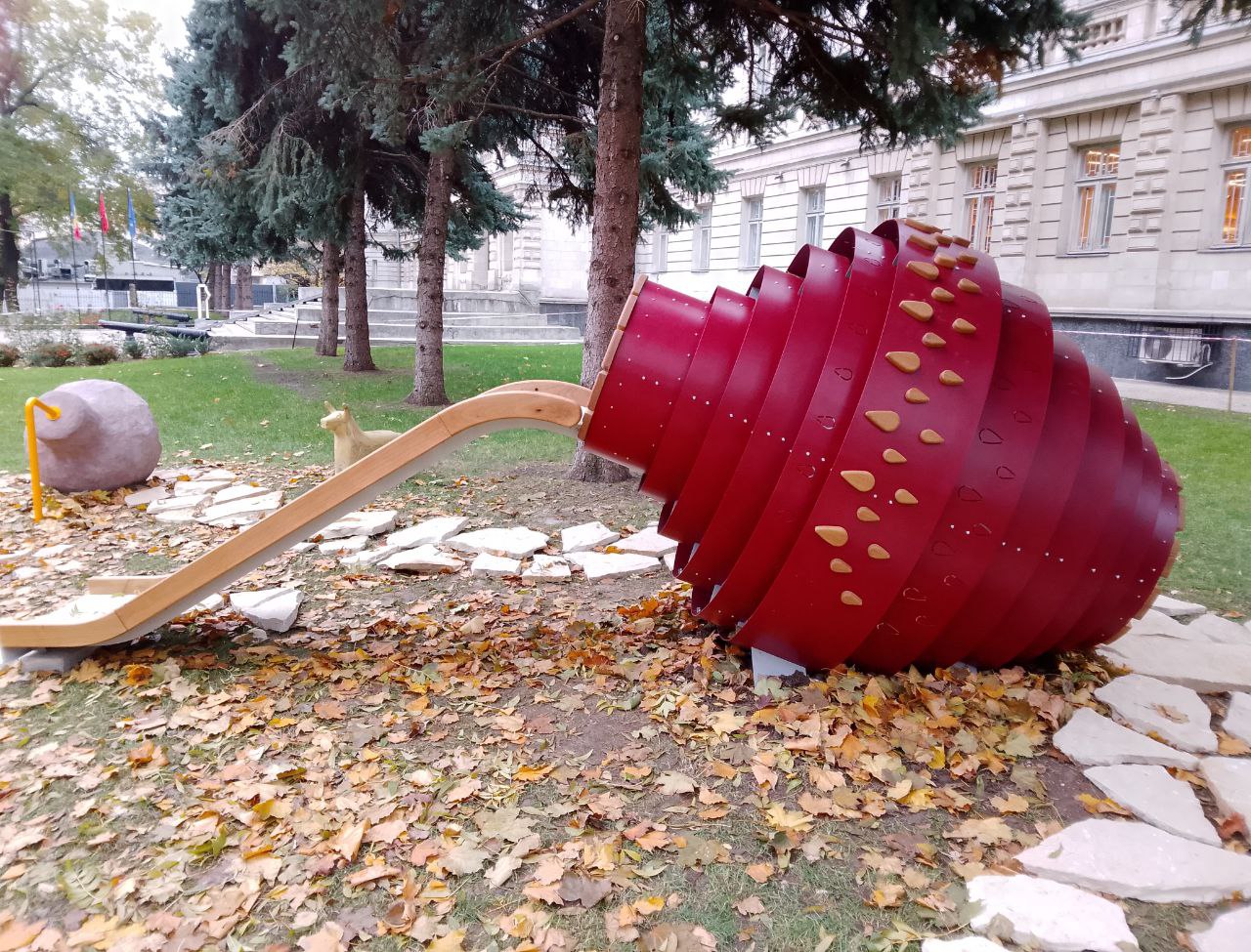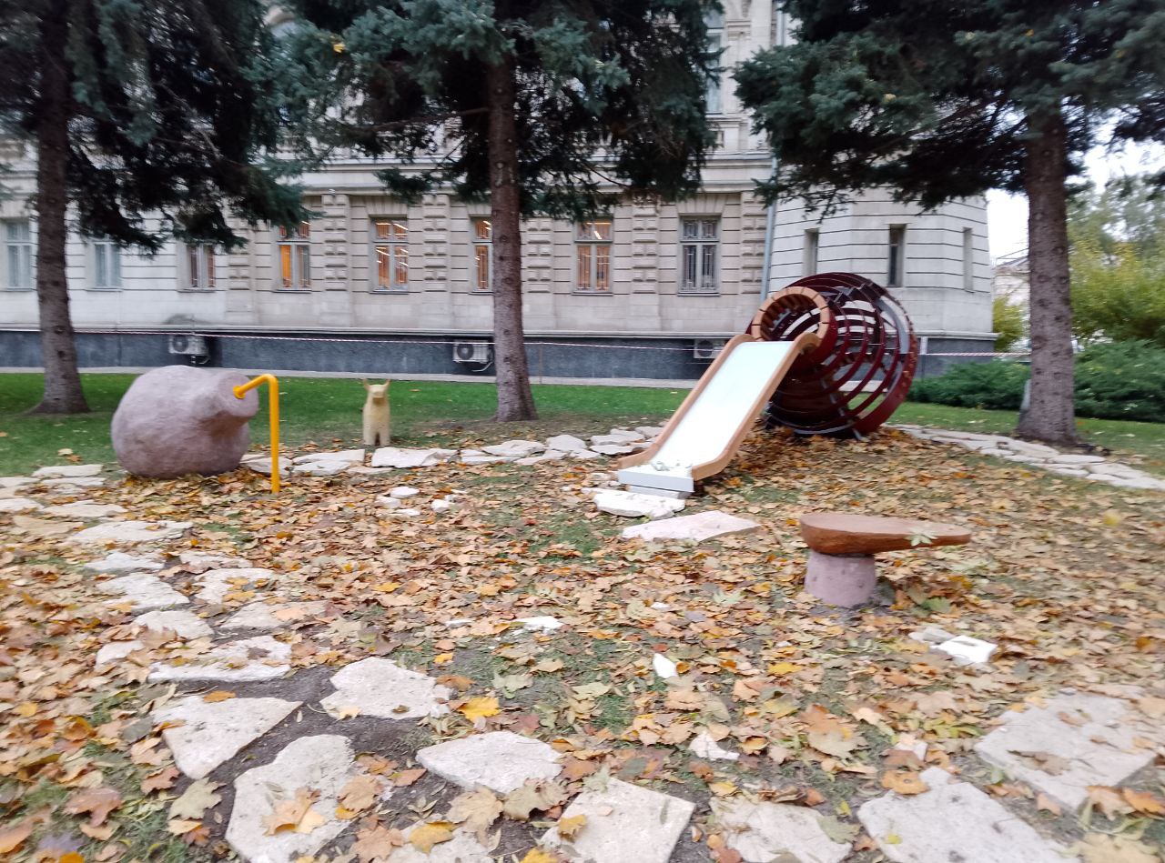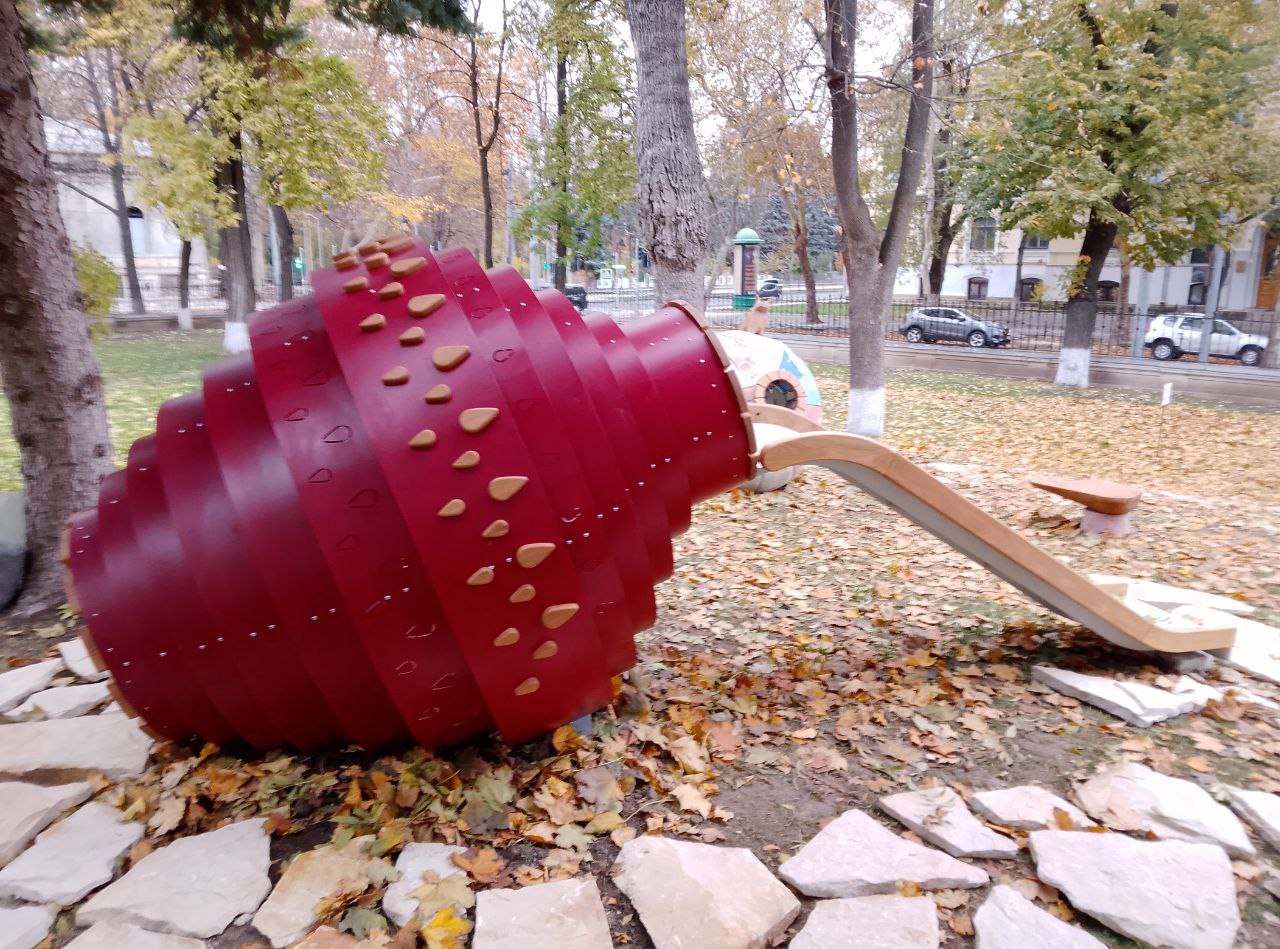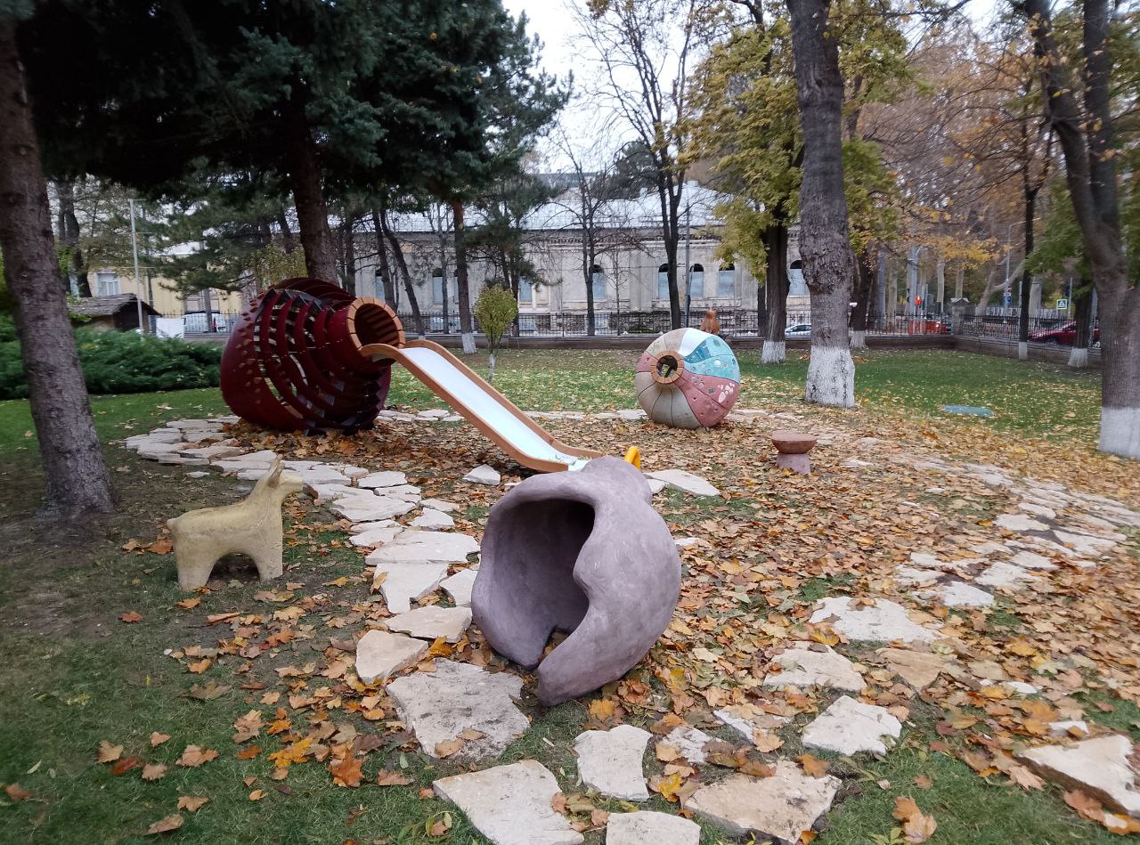 Compoziția spațială reprezintă modele sferoconice de vase și jucării de lut din epoca de piatră din colecția muzeului istoric. Potrivit organizatorilor proiectului, designul ar trebui să încurajeze generația tânără să fie interesată de istoria și cultura țării lor.