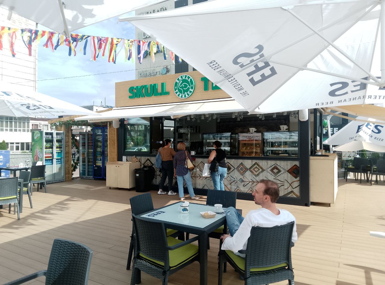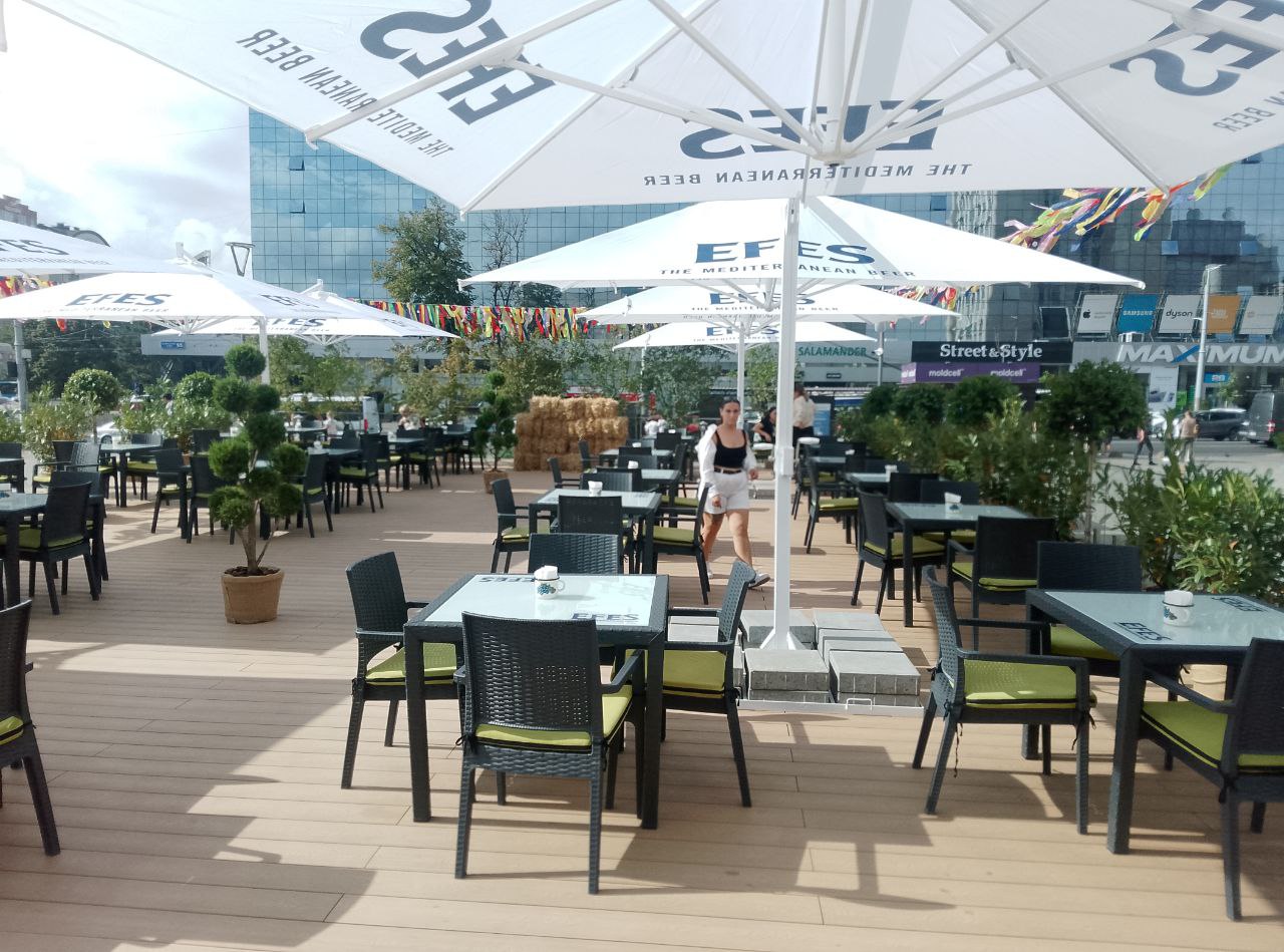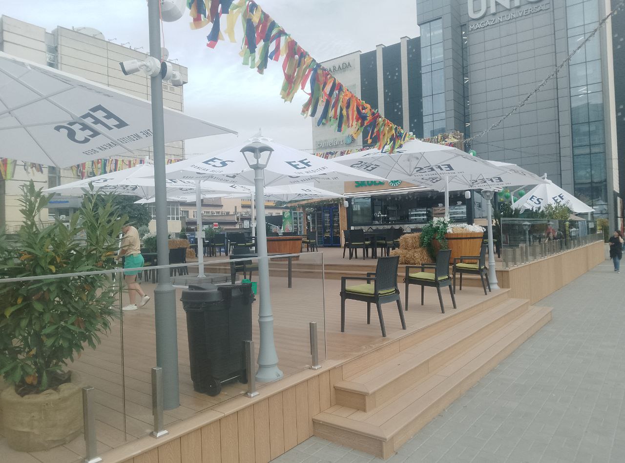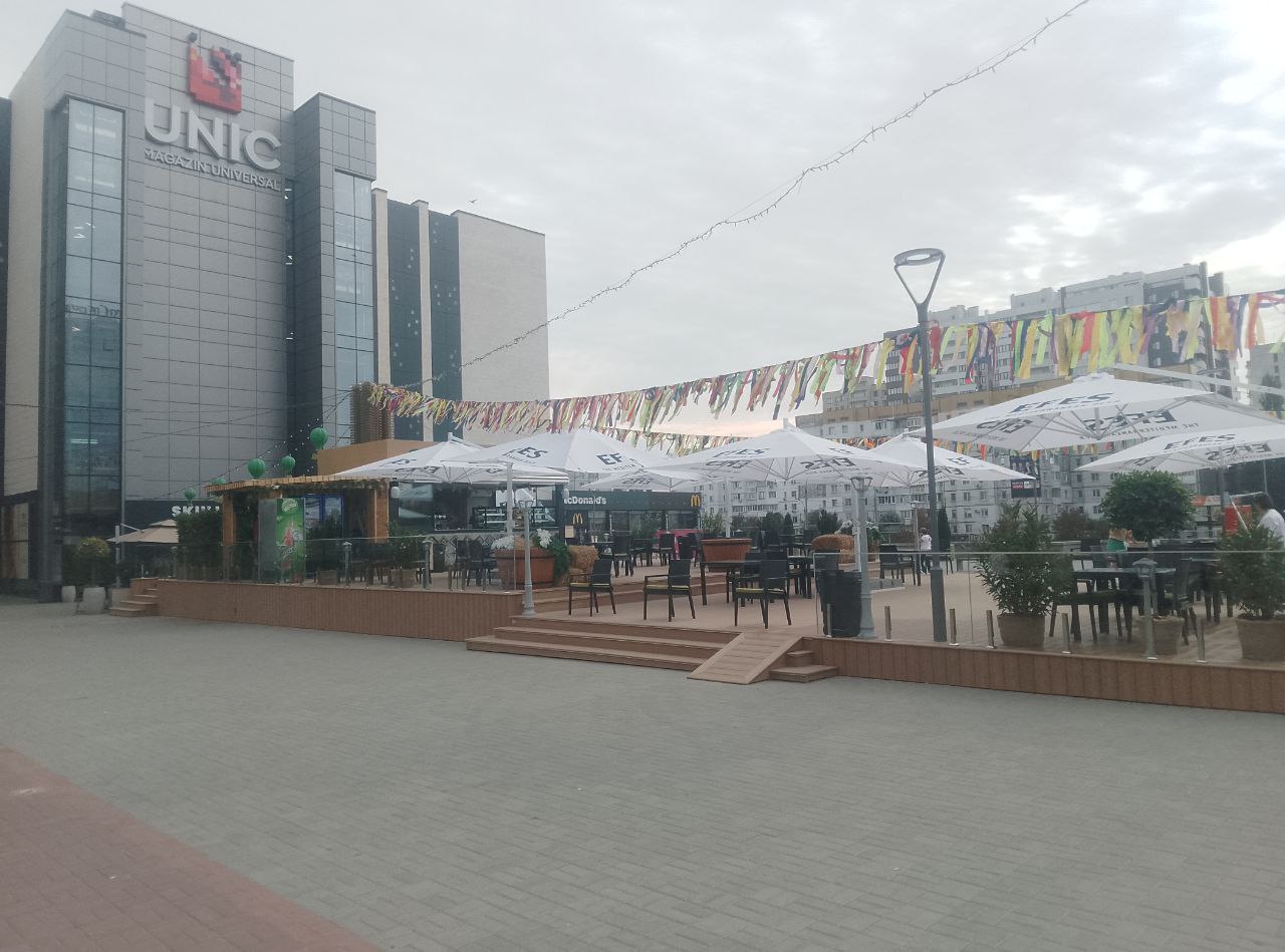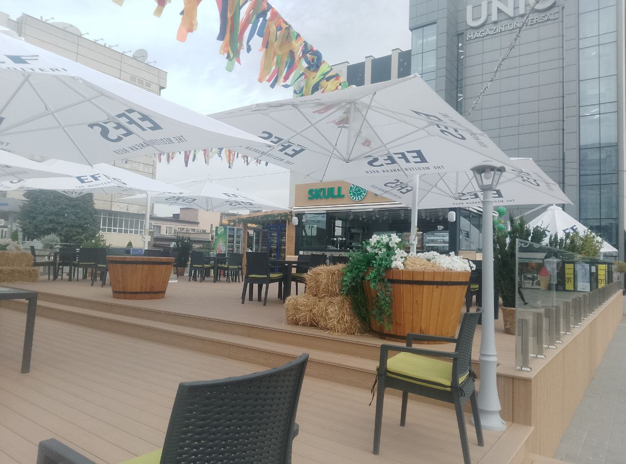 Terasa a apărut ca urmare a extinderii cafenelei situate la intrarea în magazinul universal din Chișinău.