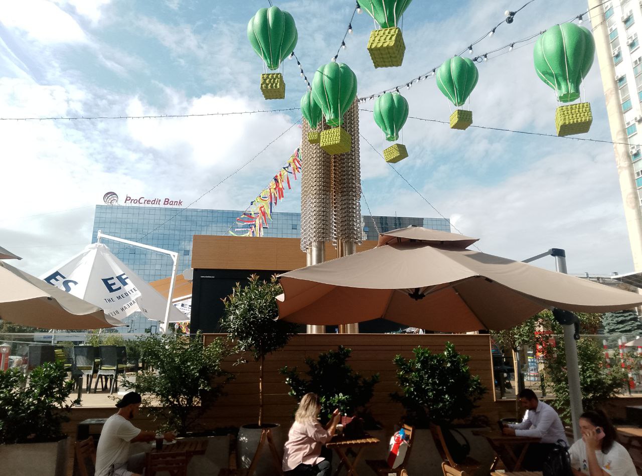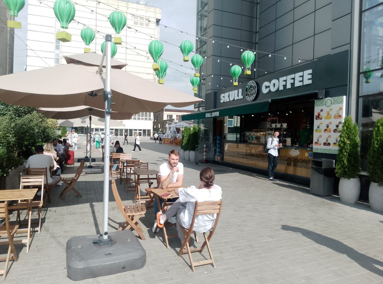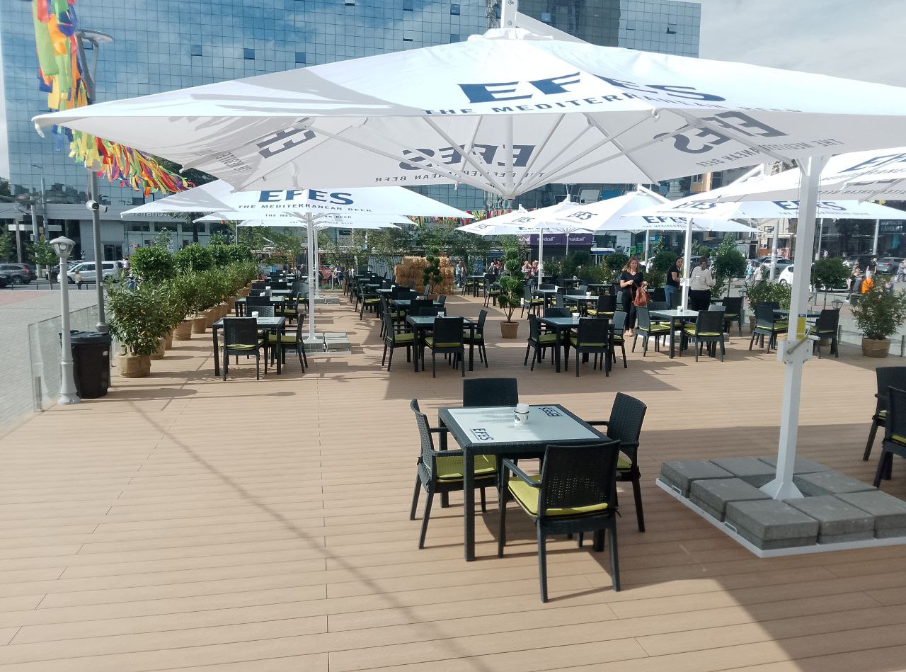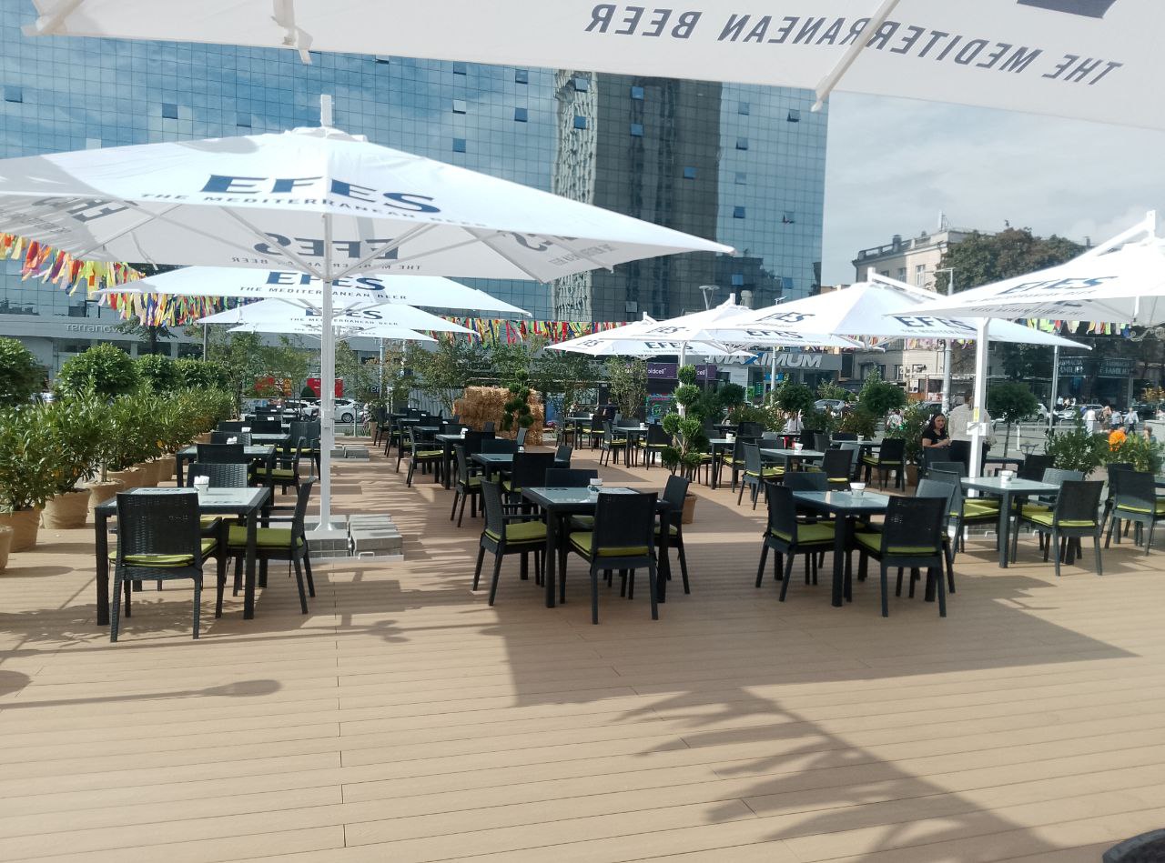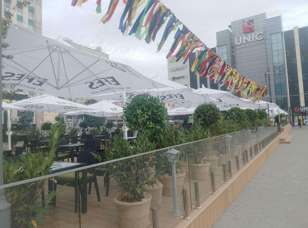 Terasa a apărut ca urmare a extinderii cafenelei situate la intrarea în magazinul universal din Chișinău.