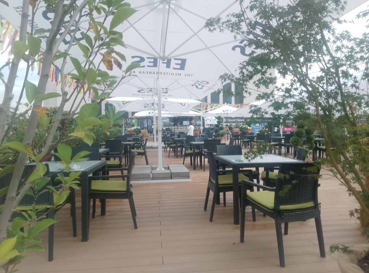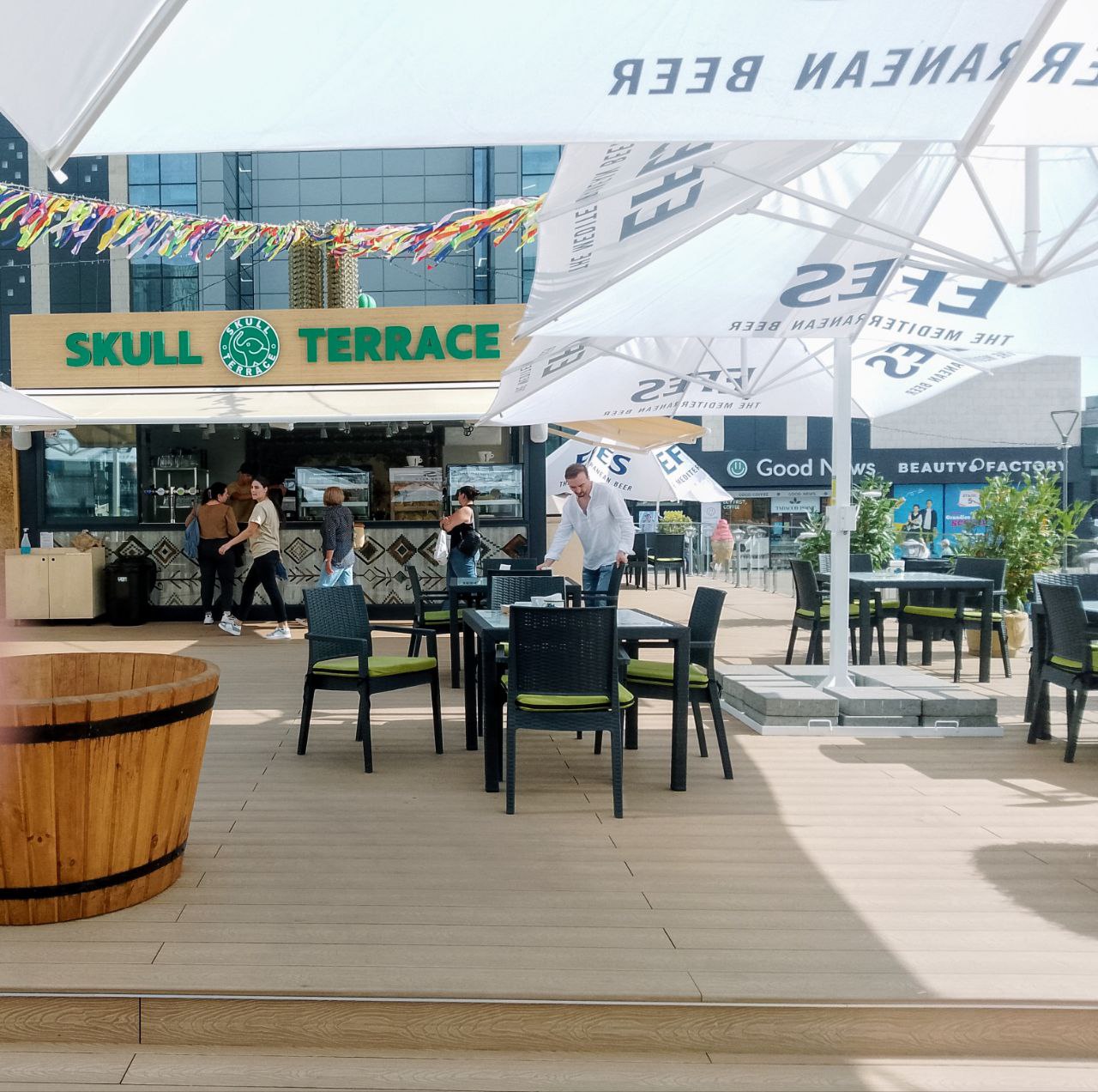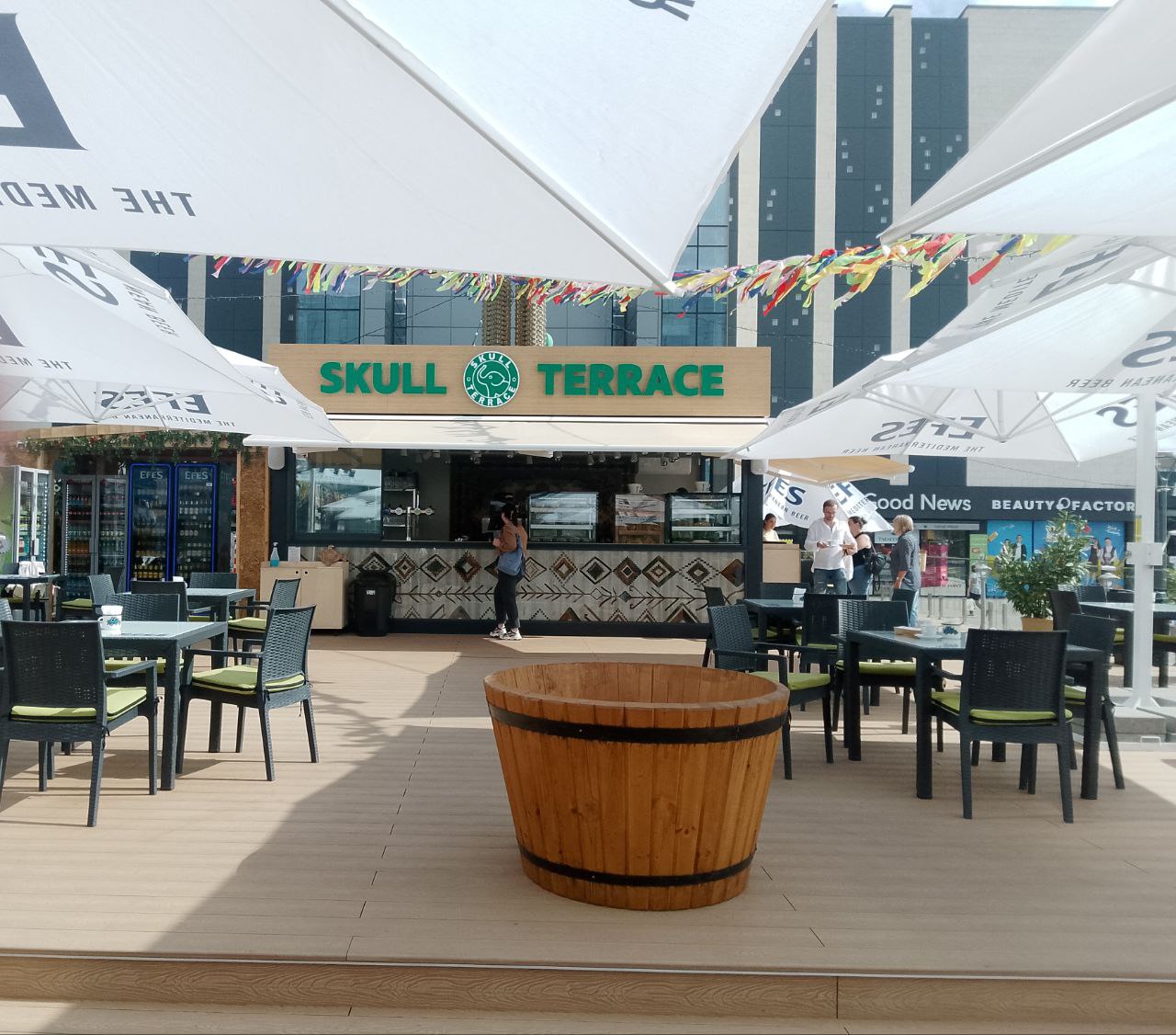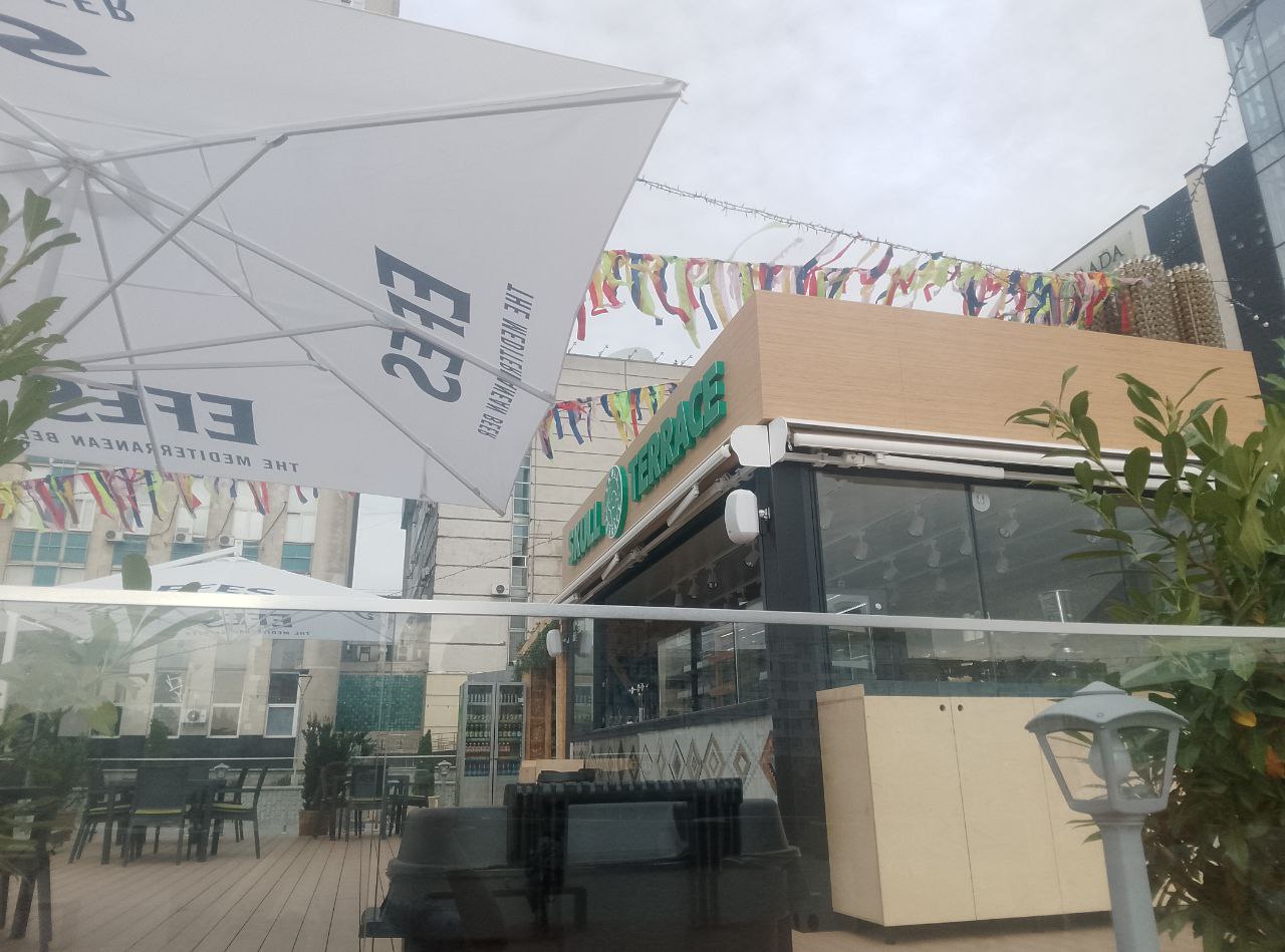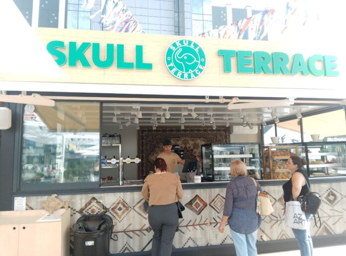 Terasa a apărut ca urmare a extinderii cafenelei situate la intrarea în magazinul universal din Chișinău.