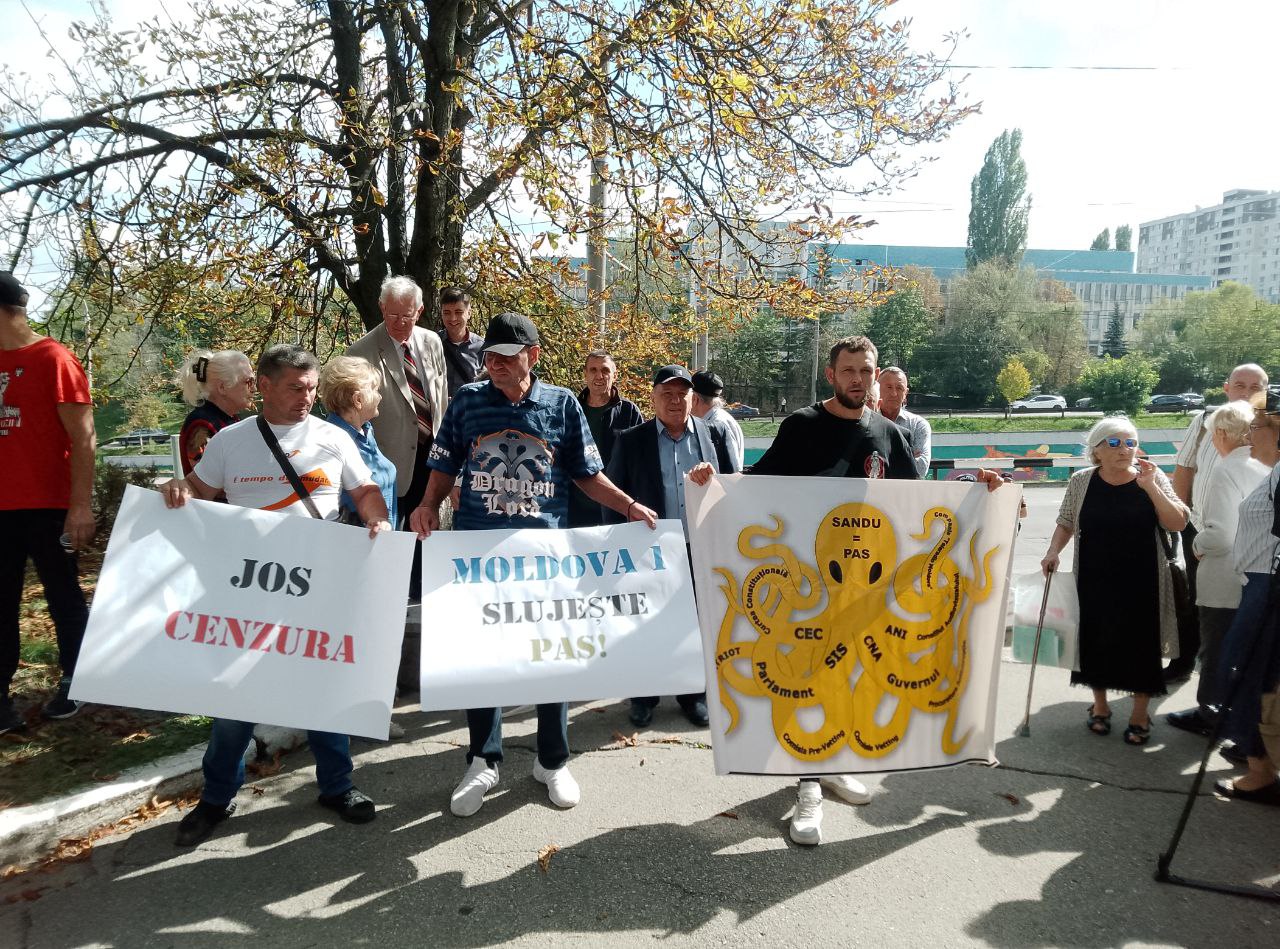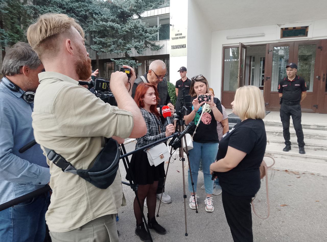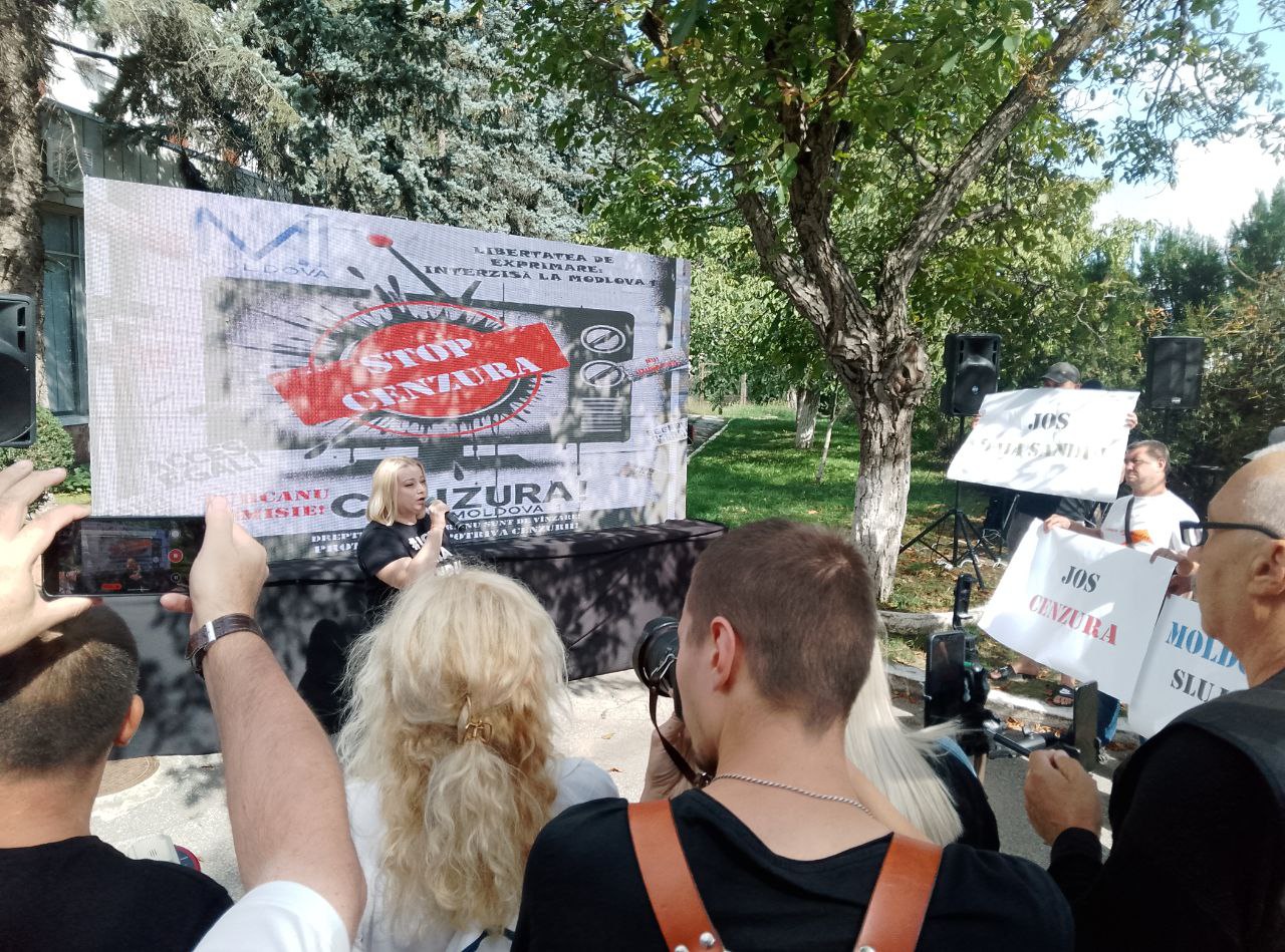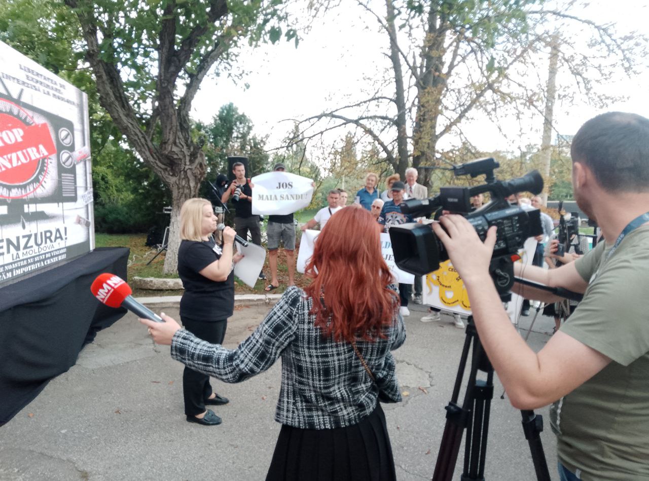 Ca răspuns, comuniștii au venit la compania publică de televiziune cu afișe: „Țurcanu demisionează”, „Moldova1 servește PAS”, „Jos cenzura”, „Jos Maia Sandu”.