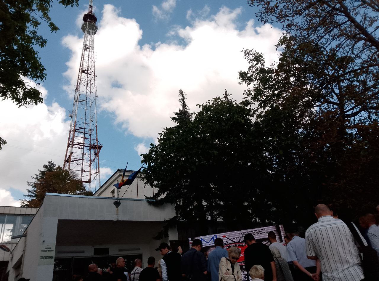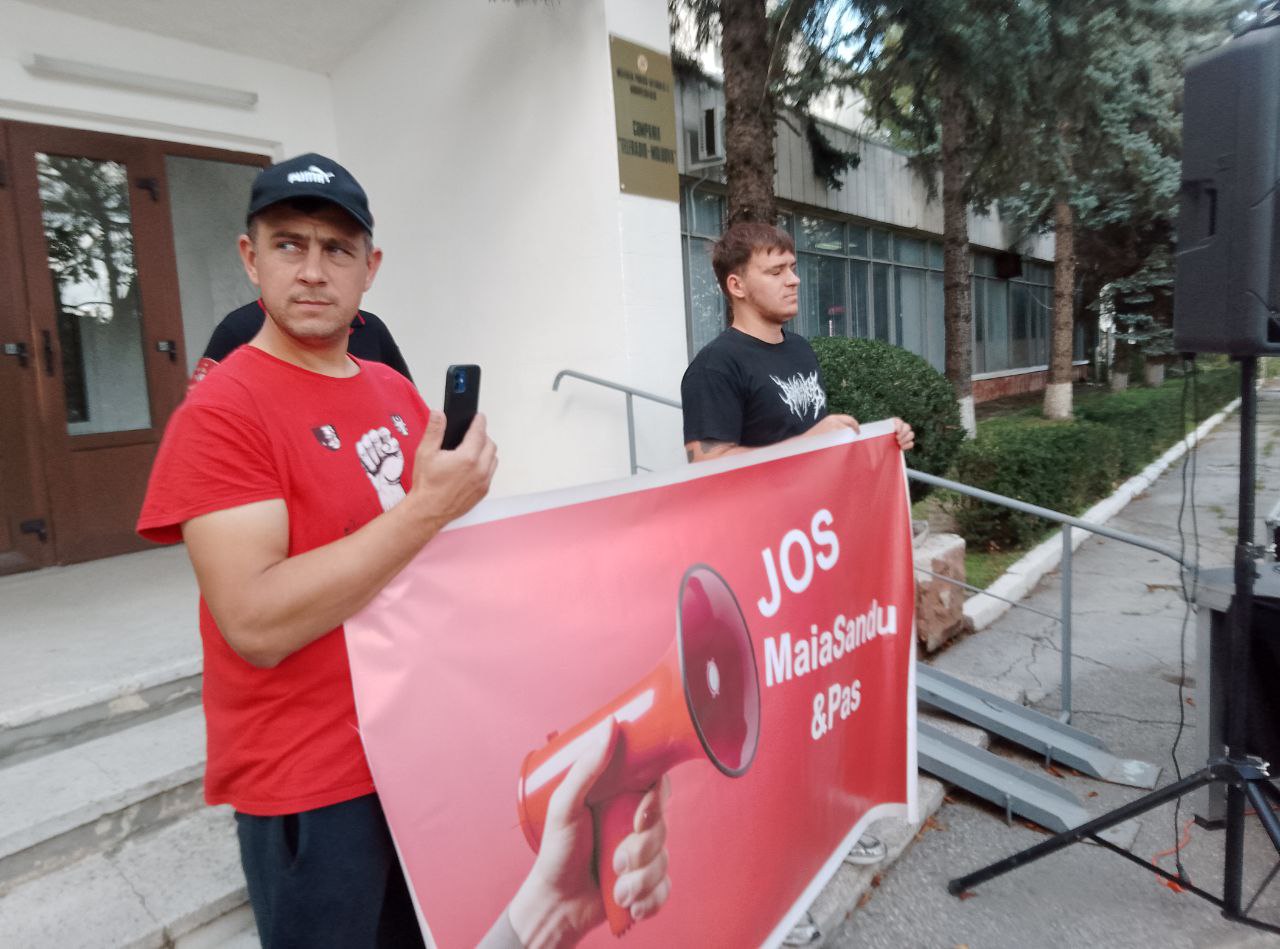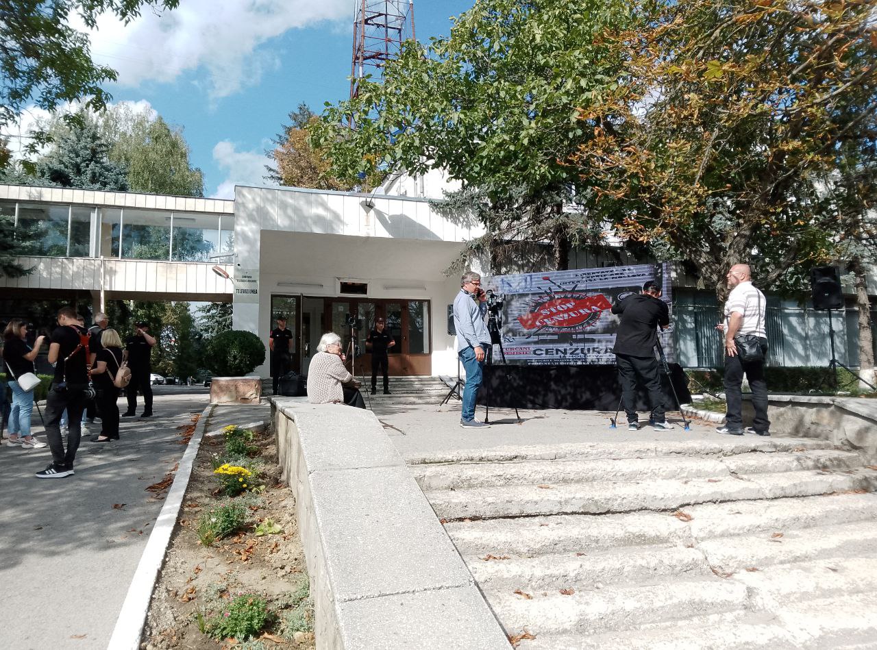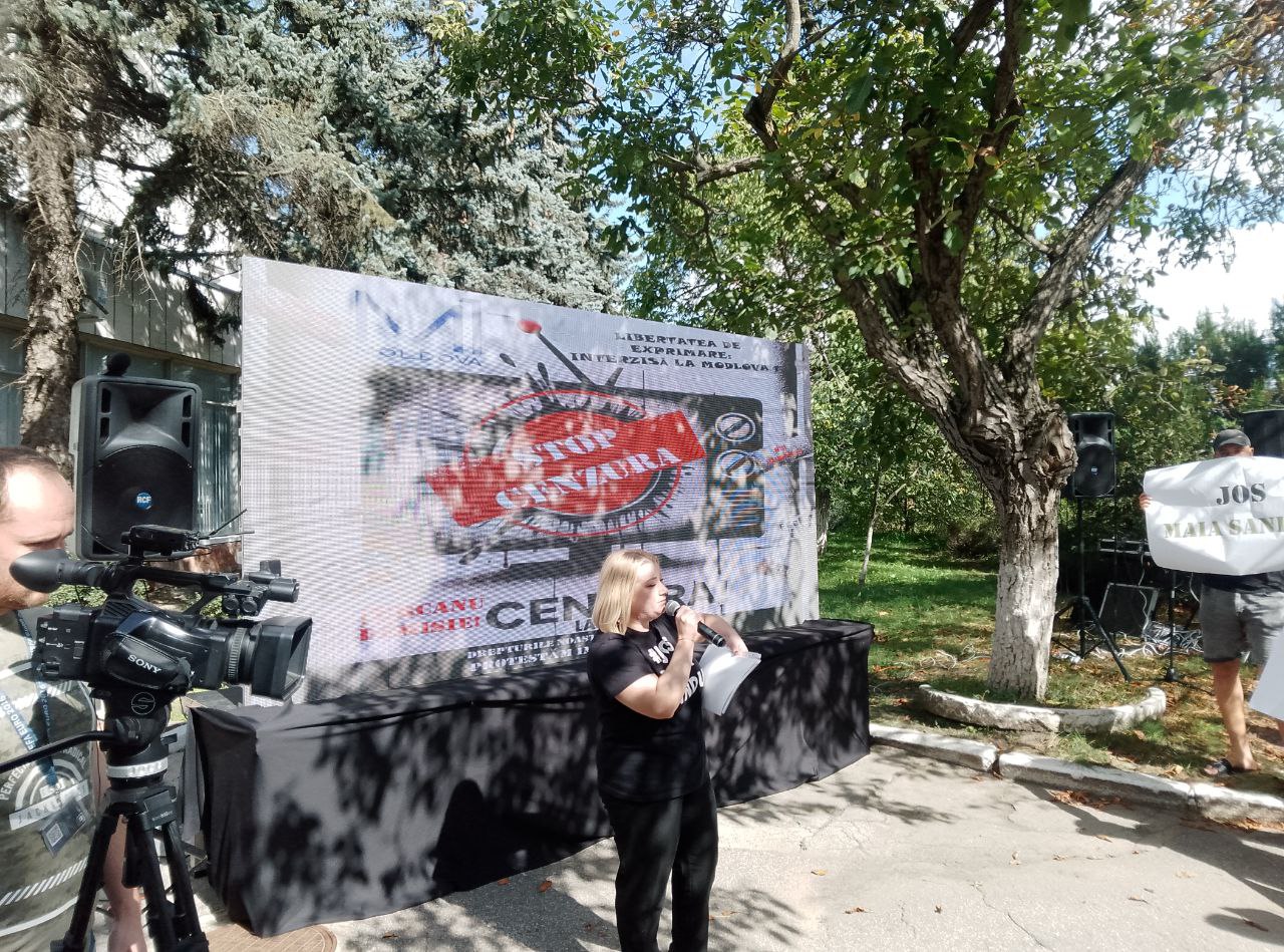 Ca răspuns, comuniștii au venit la compania publică de televiziune cu afișe: „Țurcanu demisionează”, „Moldova1 servește PAS”, „Jos cenzura”, „Jos Maia Sandu”.