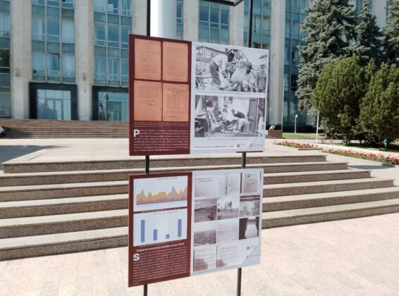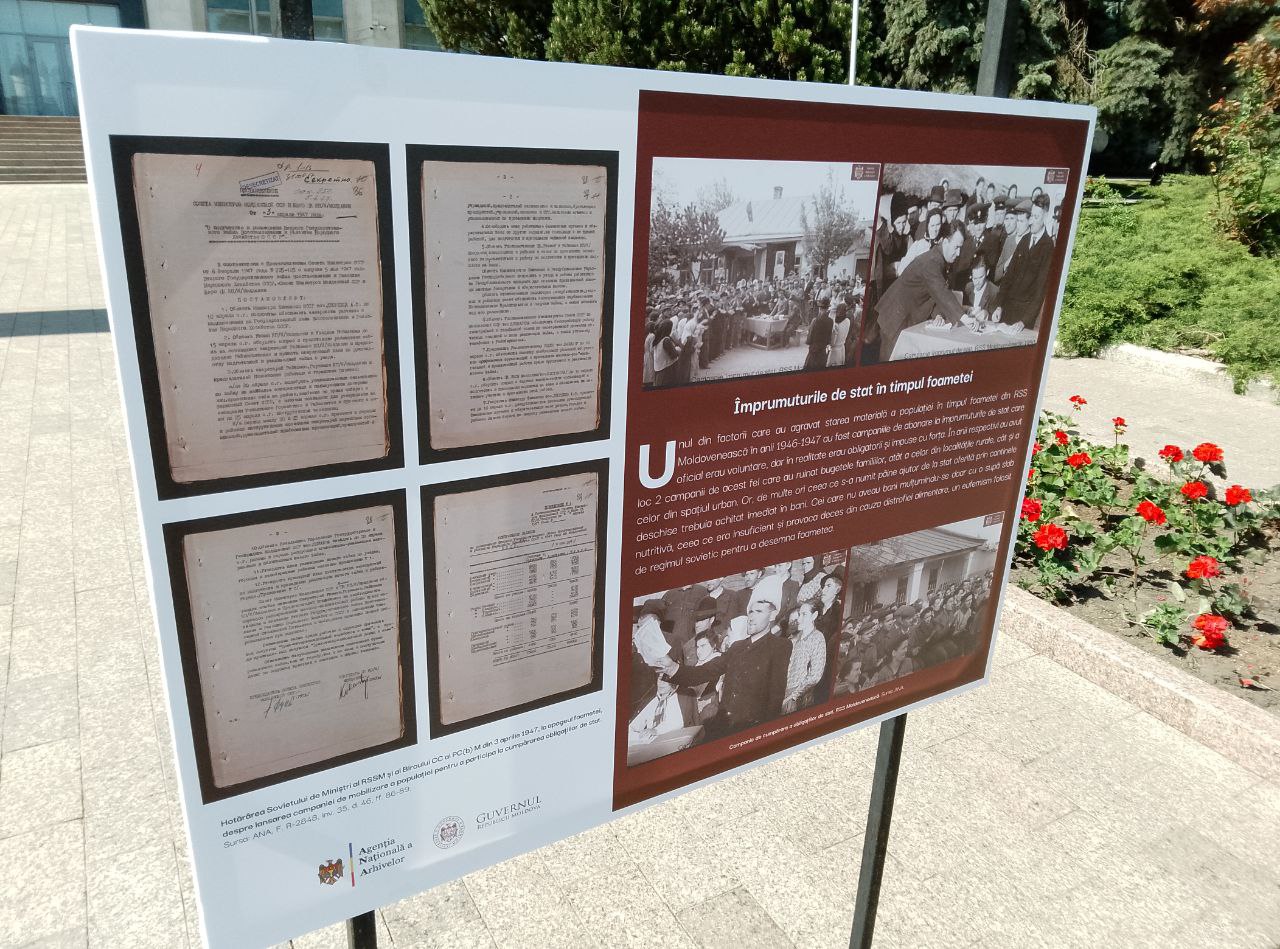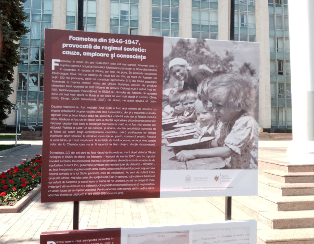 În fața clădirii Guvernului Republicii Moldova se află o expoziție dedicată memoriei victimelor foametei din 1946-1947.