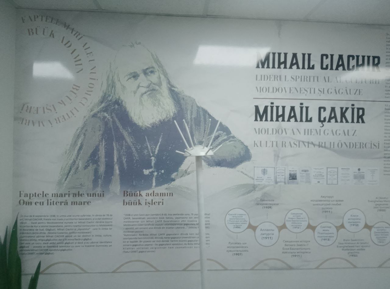 Mihail Ciachir, după care poartă numele bibliotecii, s-a implicat în editarea literaturii religioase în limba găgăuză. În plus, preotul a inițiat traducerea limbii materne din grafia chirilică în grafia latină, pe care găgăuzii o folosesc până astăzi. Mihail Ciachir este autorul cărților „Istoria găgăuzului basarabean” și „Ritualurile de nuntă ale găgăuzilor”. În 1938, anul morții preotului, a fost publicat primul dicționar găgăuz-român, sub redacția sa.