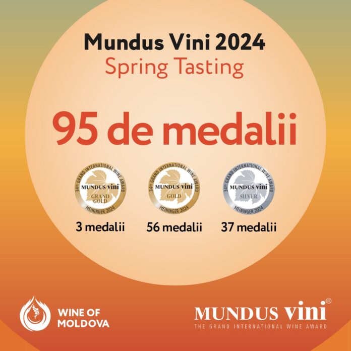 Vinificatorii moldoveni au primit trei medalii Mari de aur, 56 de aur și 37 de argint. 96 de medalii – un nou record pentru Moldova. Anul trecut, la Degustarea de primăvară Mundus Vini, vinurile moldovenești au adunat o colecție de 88 de medalii.