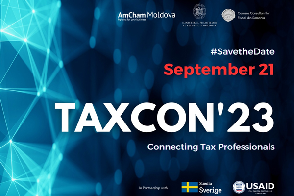 Conferința TAXCON’23 este organizată de Camera Americană de Comerț din Moldova (AmCham Moldova), Ministerul Finanțelor Republicii Moldova și Camera Consultanților Fiscali din România cu sprijinul Agenției Statelor Unite pentru Cooperare Internațională (USAID) și Ambasada Suediei în Moldova.