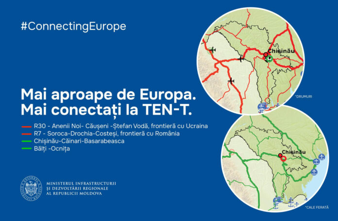 Ministerul Infrastructurii și Dezvoltării Regionale a informat că coridorul rețelei transeuropene care leagă țările europene de Ucraina cuprinde două tronsoane ale drogului din Moldova: autostrada dintre orașele Soroca, Drochia spre vama Costeă și frontiera cu România, și drumul Anenii Noi – C. C.).