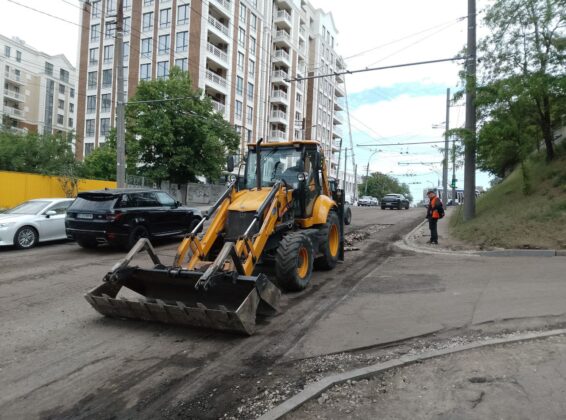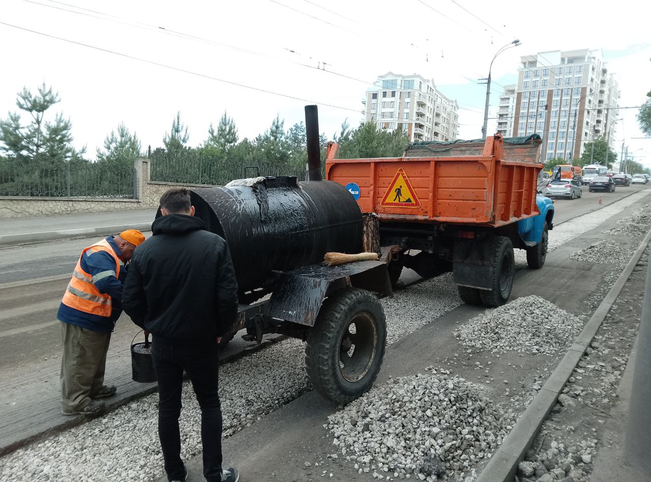В настоящее время работники муниципальных служб занимаются фрезерованием старого асфальта и укладкой нового слоя, выравниванием крышек канализационных люков, заменой бордюров и восстановлением тротуаров.