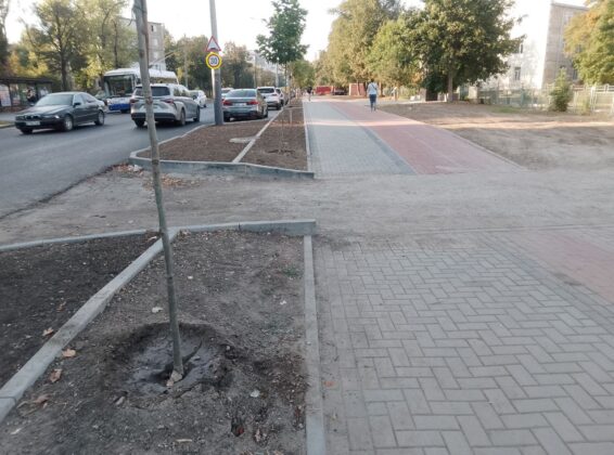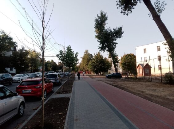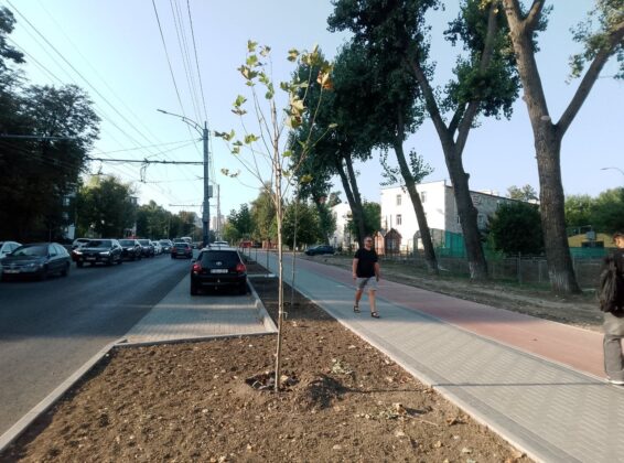 Новые клёны дополнили облик недавно полностью модернизированной улицы, впервые с момента существования которой, был произведён капитальный ремонт, как проезжей части, так и тротуаров.