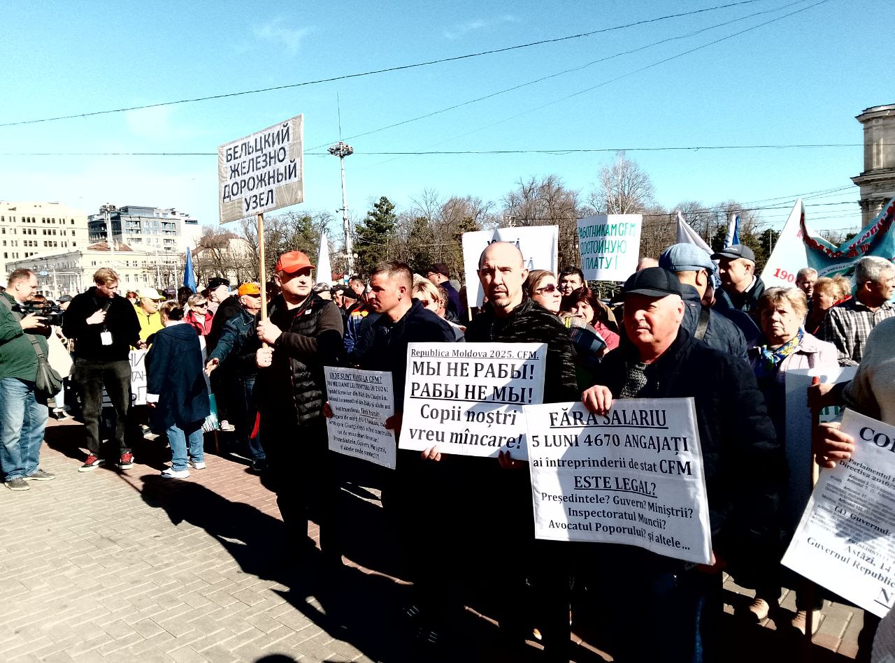 Напомним, что 14 февраля этого года Федерация профсоюзов железнодорожников Молдовы (FSF) организовала демонстрацию работников государственного предприятия «Железная дорога Молдовы» («Calea Ferată din Moldova», CFM), не получающих зарплату уже более шести месяцев.