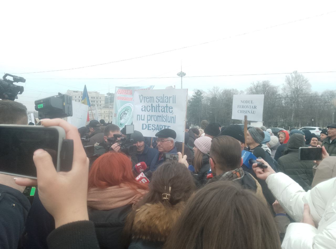 «Зарплату! Геноцид! Остановка!», — скандировали собравшиеся, к которым вышел государственный секретарь по транспорту Mircea Păscăluță. Чиновник объяснил, что Министерство инфраструктуры и регионального развития РМ прилагает все усилия, чтобы найти средства и рассчитаться с железнодорожниками.