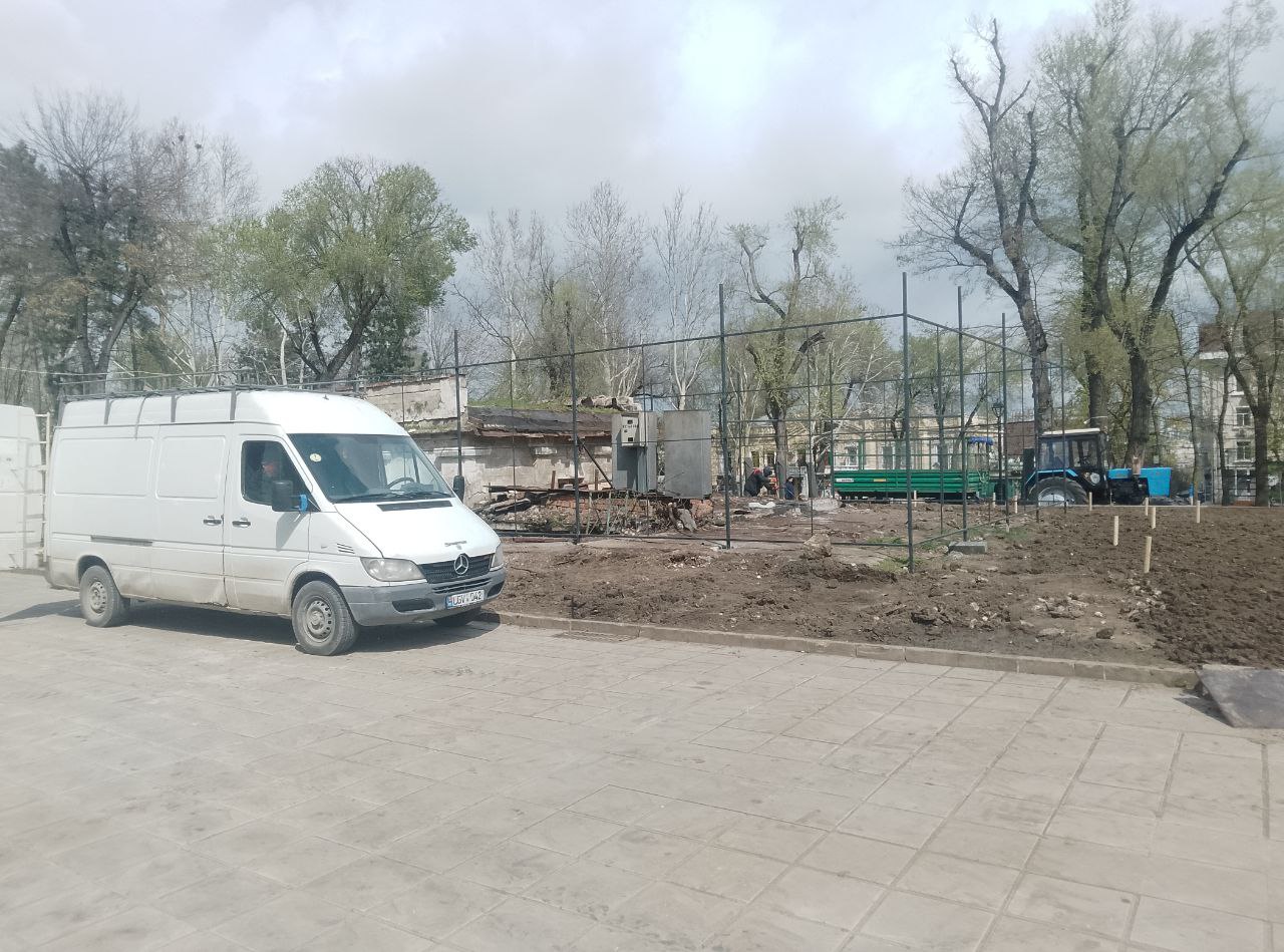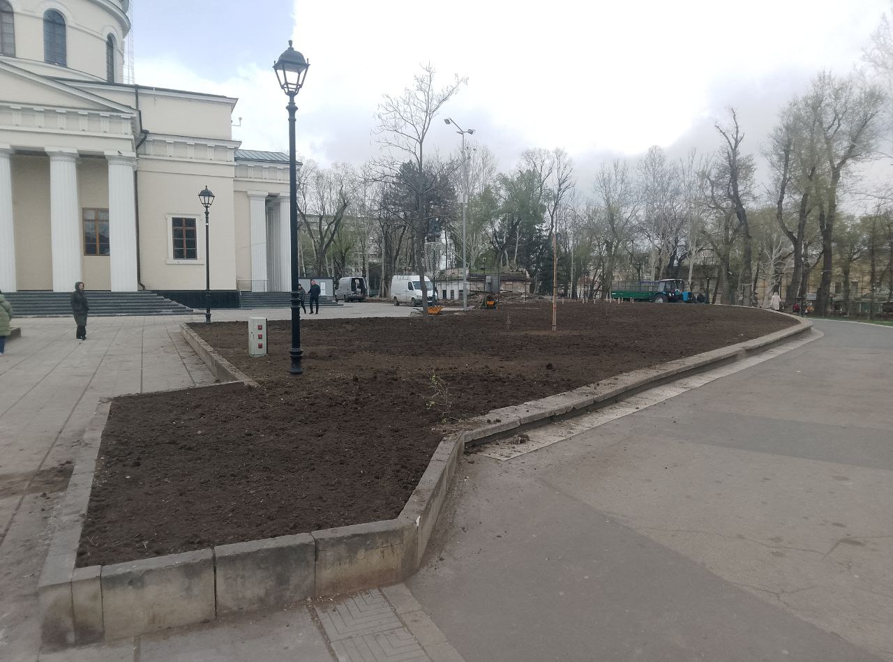 В столичном сквере Кафедрального собора ведутся работы по благоустройству территории.
