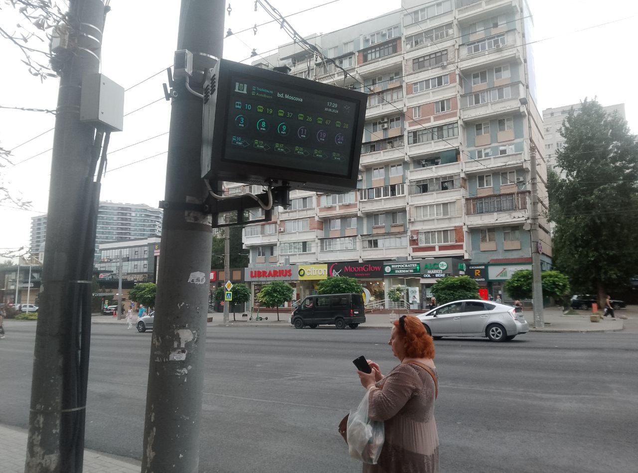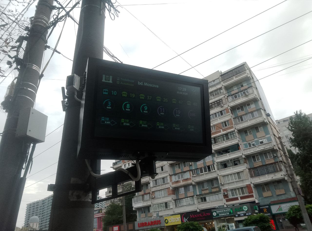 Также на остановках Кишинёве устанавливают электронные табло нового образца, которые не только показывают примерное время прибытия маршрутов автобусов или троллейбусов, но и демонстрируют рекламные ролики. Кроме этого в случае вынужденных изменений маршрутов мониторы предлагают пассажирам альтернативные варианты возможностей добраться до необходимого места.