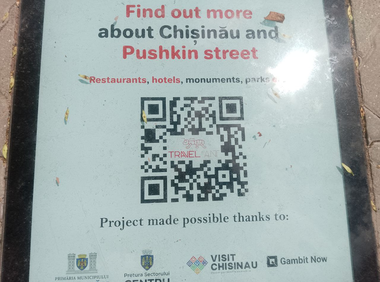 При сканировании QR-кода открывается цифровая карта, на которой указано ваше местоположение и все достопримечательности Кишинёва в этой зоне.