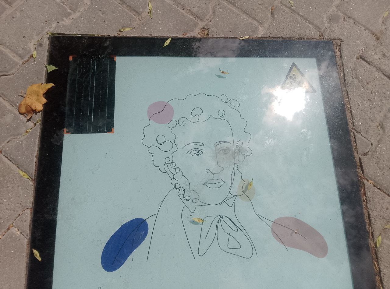 Интерактивное устройство, вмонтированное в тротуар и оснащённое солнечной батареей и автономным освещением, оборудовали на пересечении улиц Пушкина и 31 августа 1989 года.