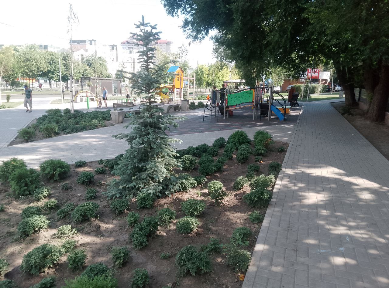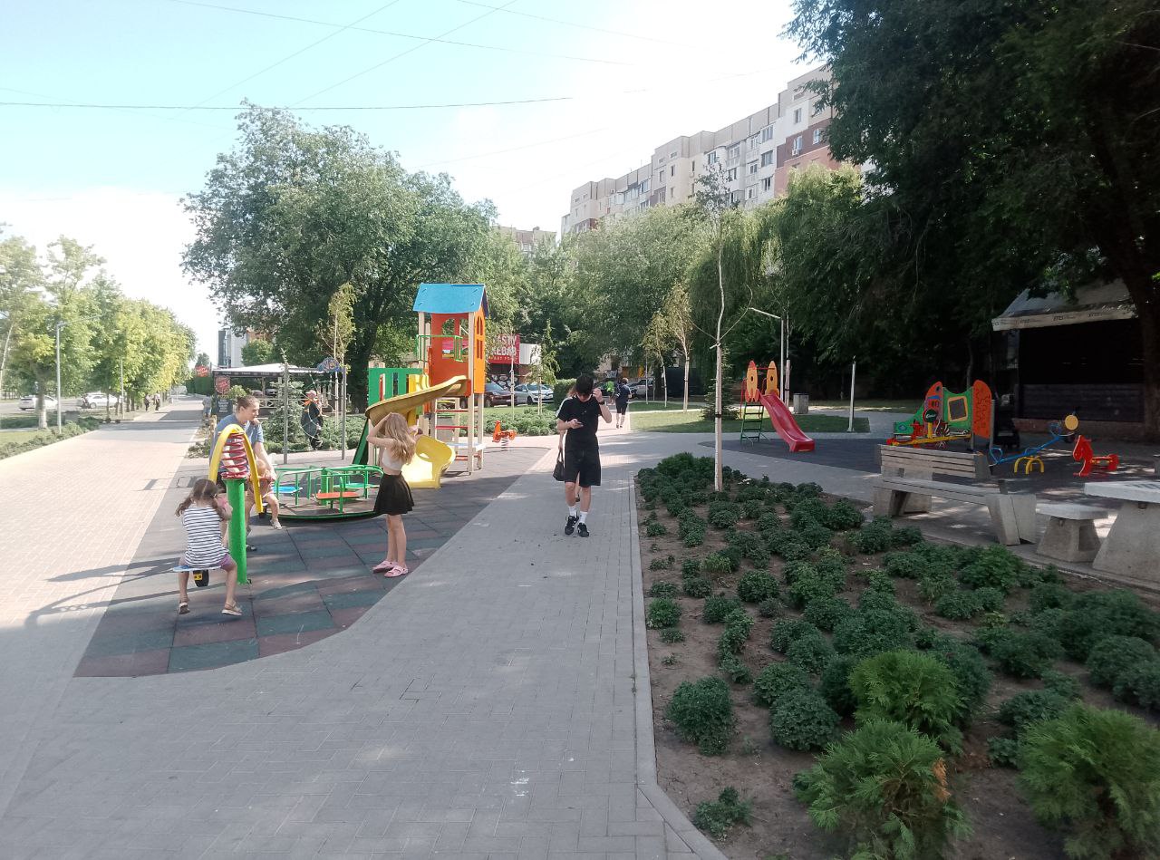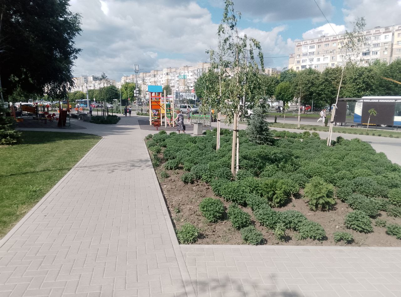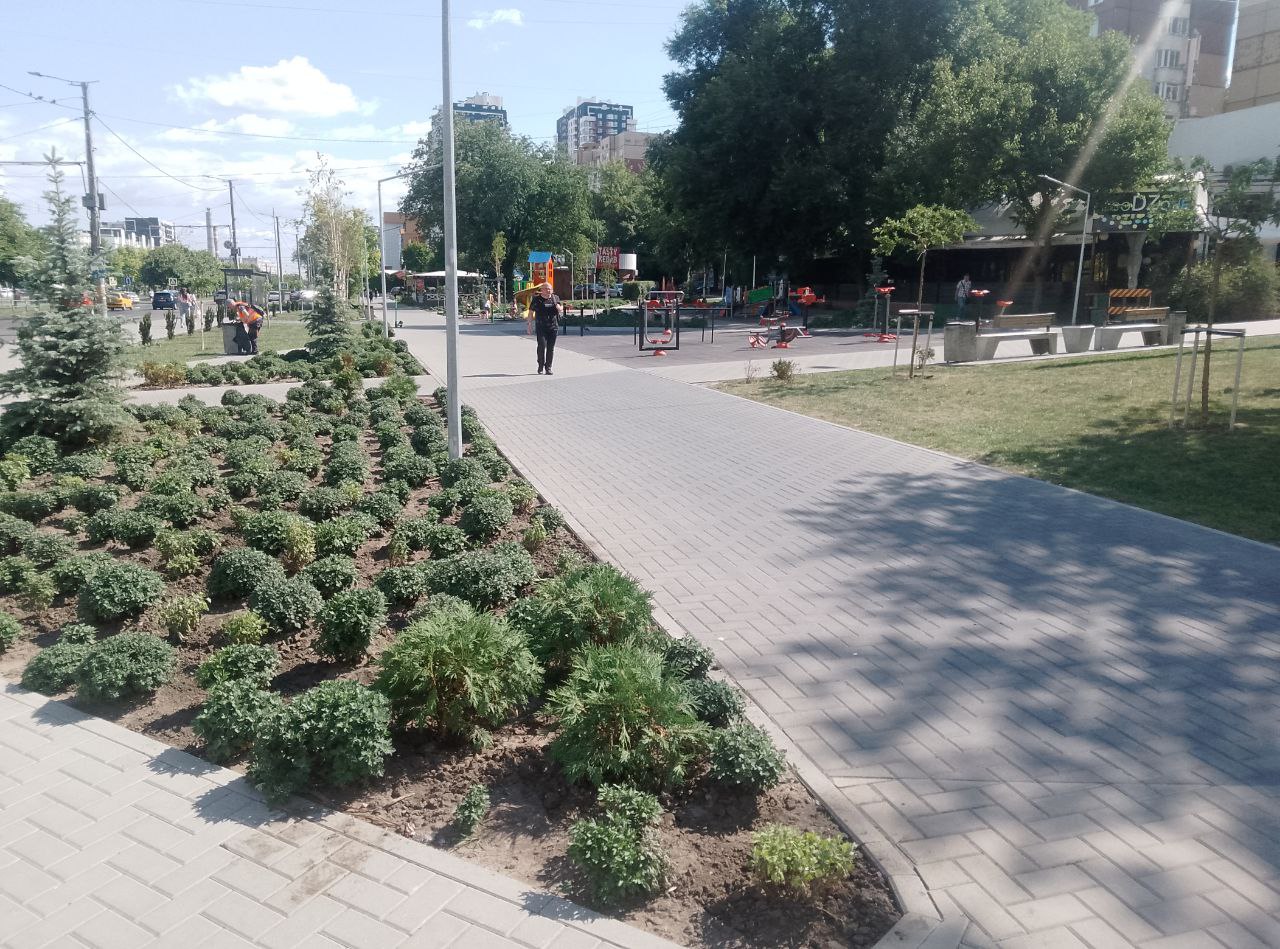 Здесь появилась детская площадка, установлены спортивные тренажёры, были высажены красивые растения.