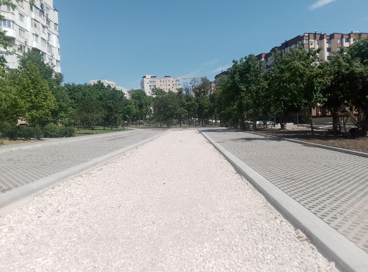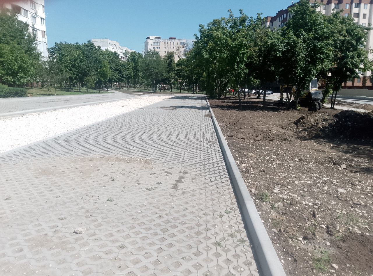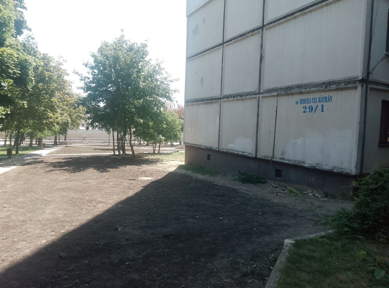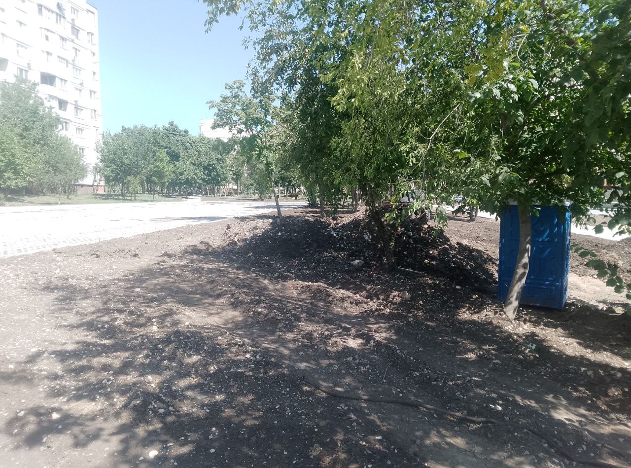 А рядом, в сквере у дома по адресу Mircea cel Bătrân, 29/1 идёт благоустройство прилегающей территории. В этом месте было разобрано и вывезено около 50 металлических гаражей, что позволило создать более комфортное пространство для местных жителей.