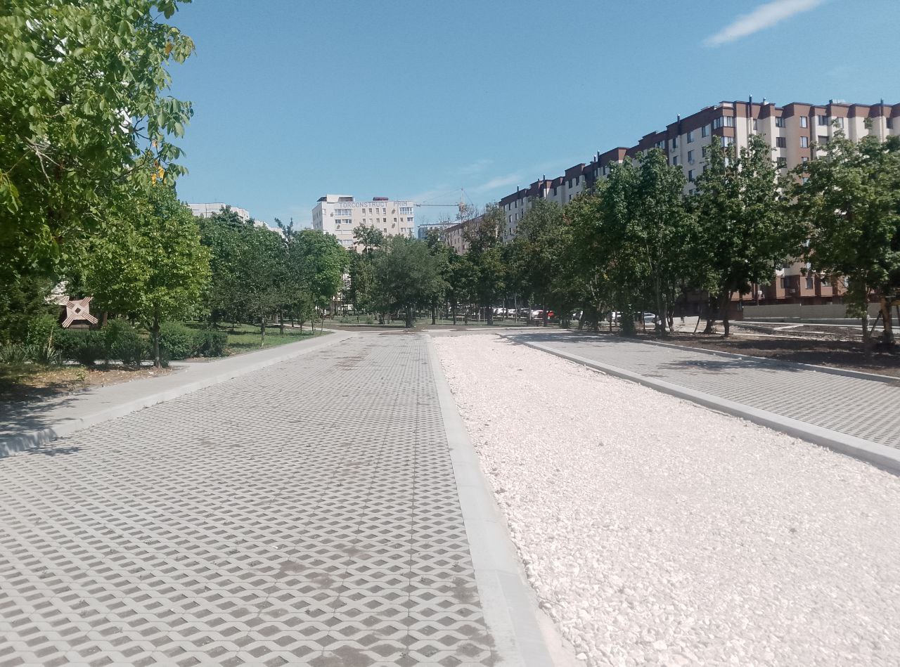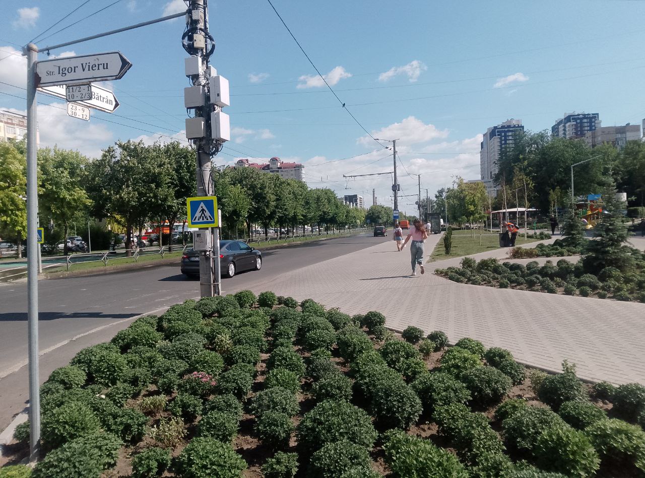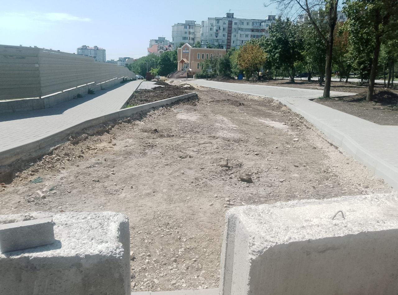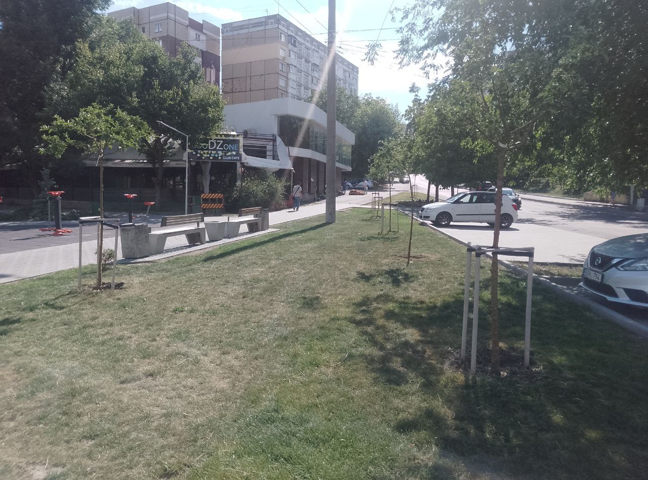 А рядом, в сквере у дома по адресу Mircea cel Bătrân, 29/1 идёт благоустройство прилегающей территории. В этом месте было разобрано и вывезено около 50 металлических гаражей, что позволило создать более комфортное пространство для местных жителей.