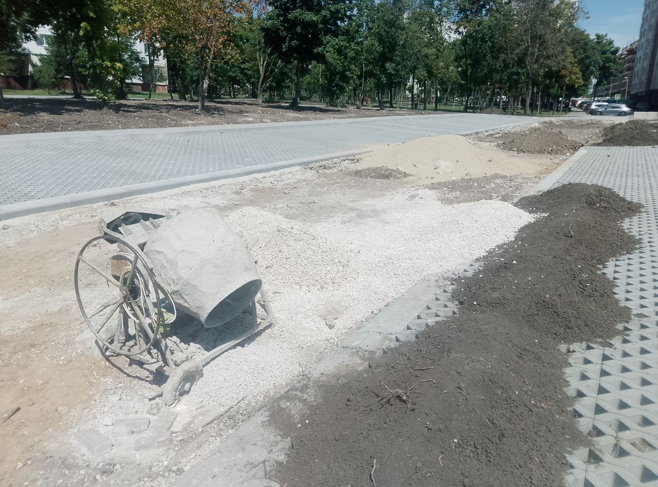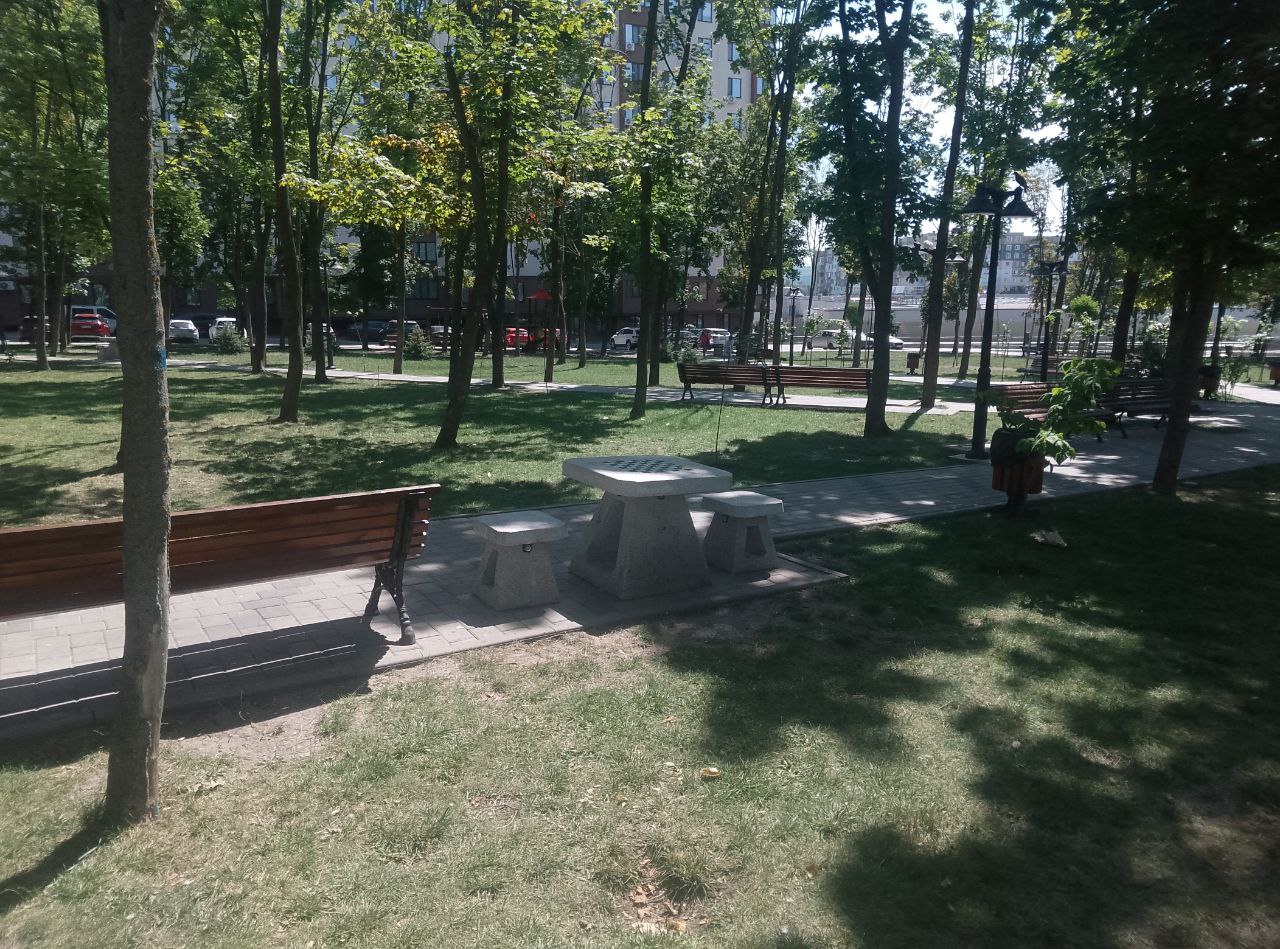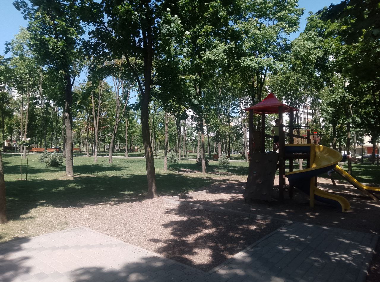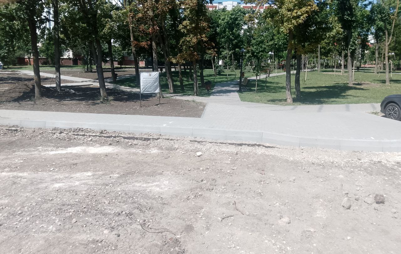 А рядом, в сквере у дома по адресу Mircea cel Bătrân, 29/1 идёт благоустройство прилегающей территории. В этом месте было разобрано и вывезено около 50 металлических гаражей, что позволило создать более комфортное пространство для местных жителей.
