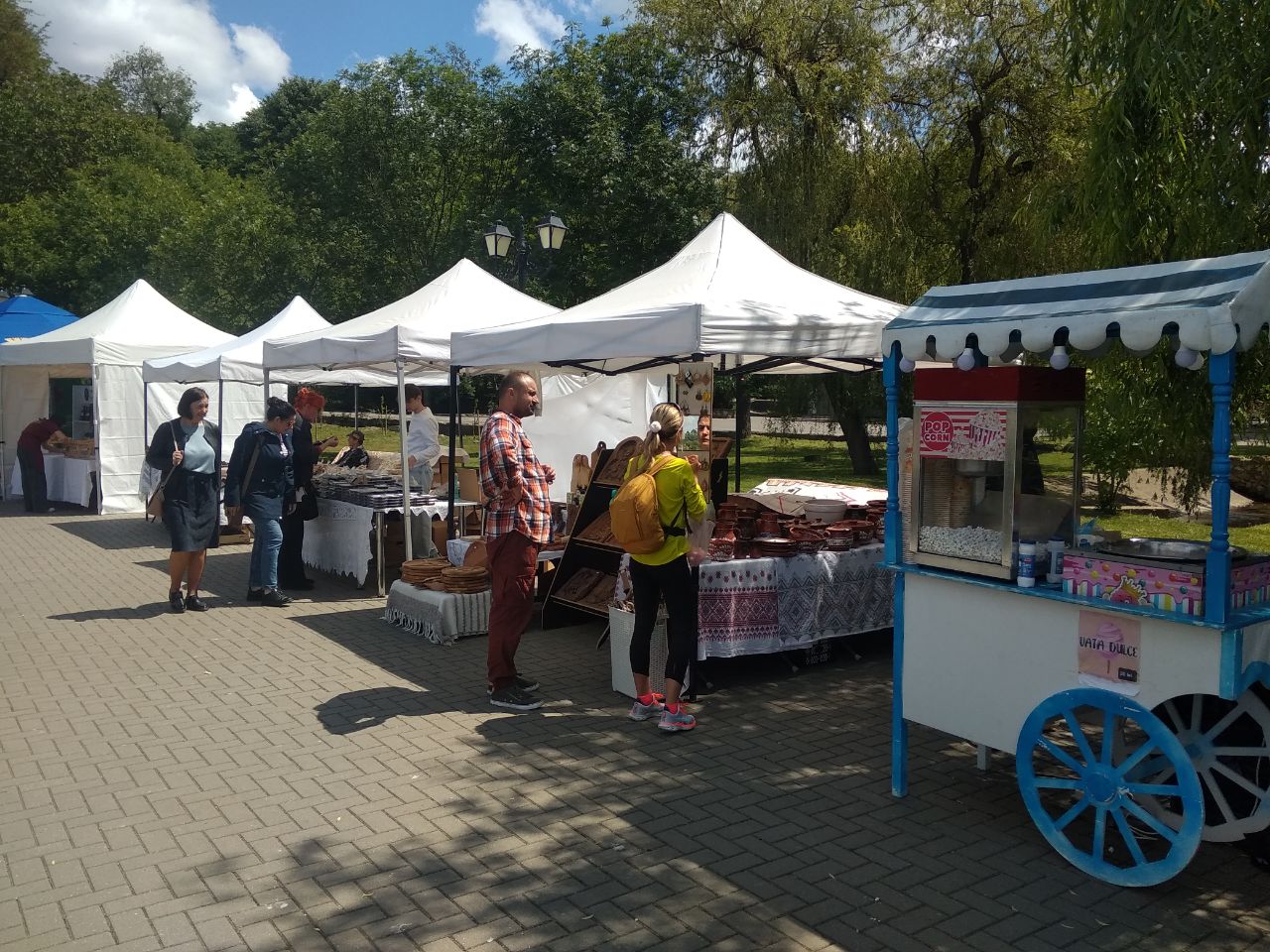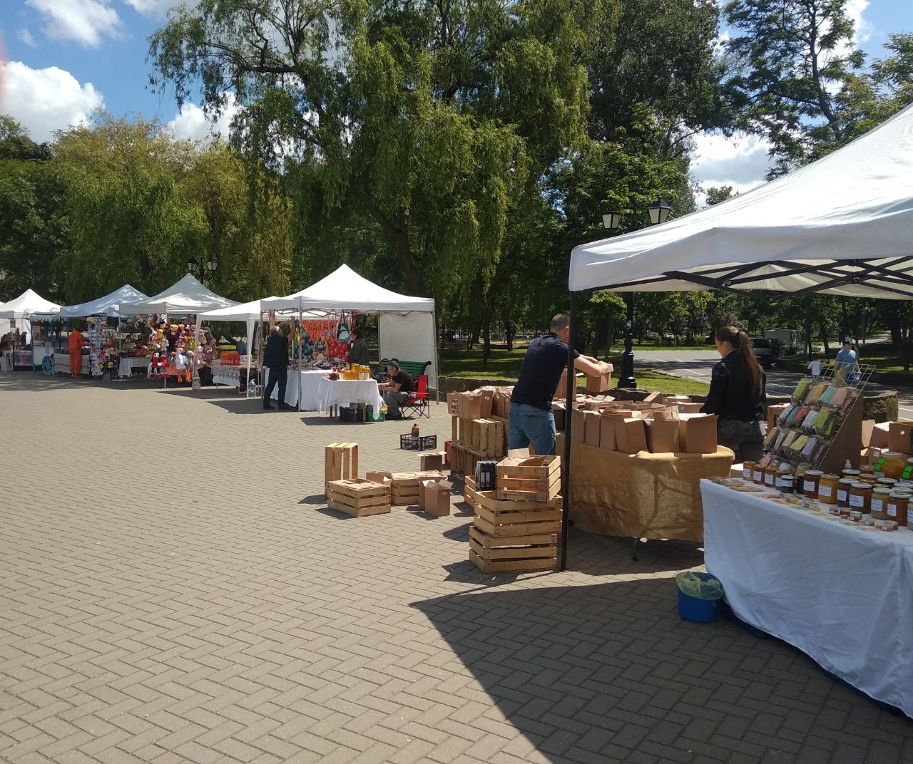 К открытию летнего концертного сезона городская администрация организовала ярмарку. Здесь можно приобрести товары местных производителей, а также отдохнуть в кафе на берегу озера.