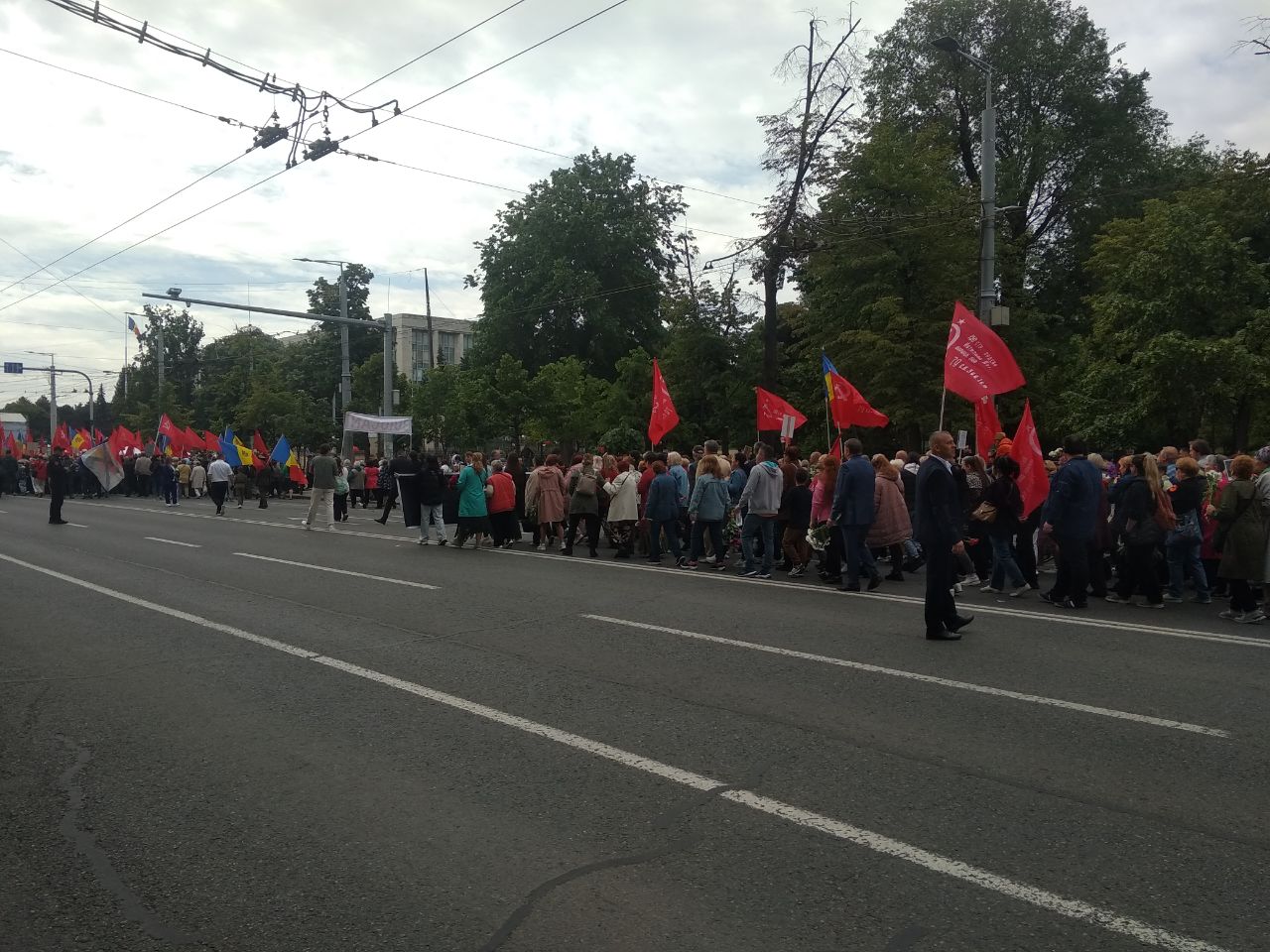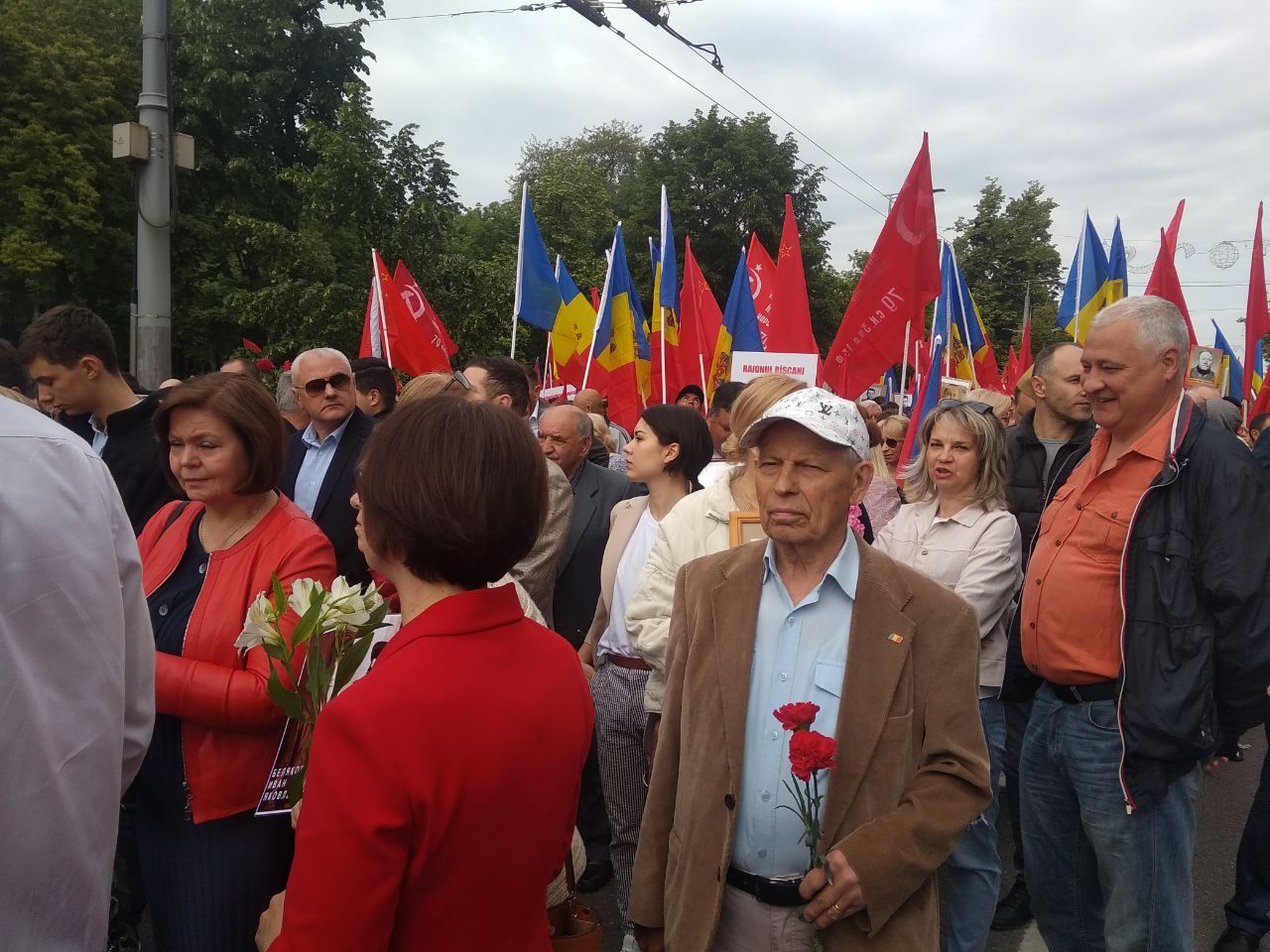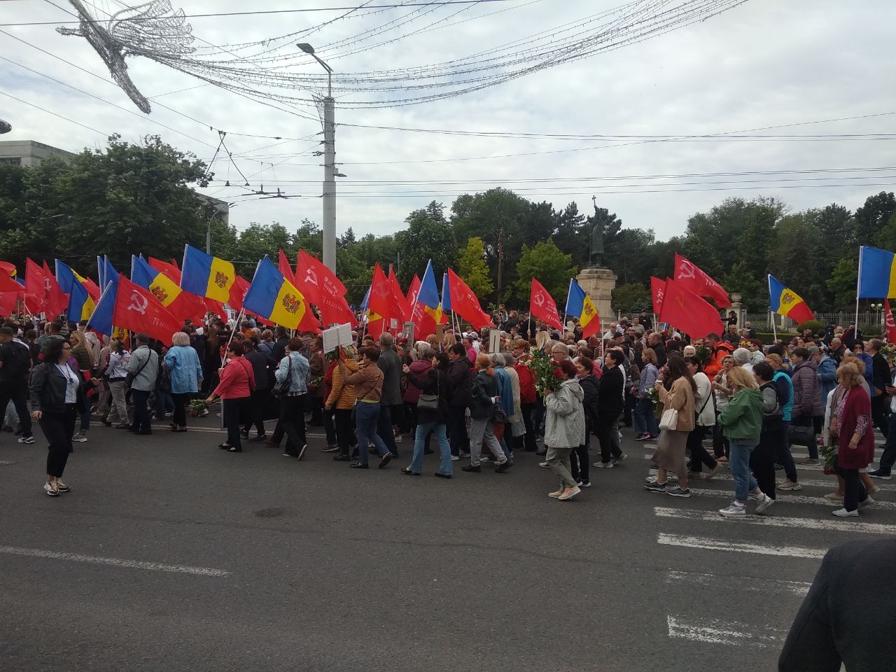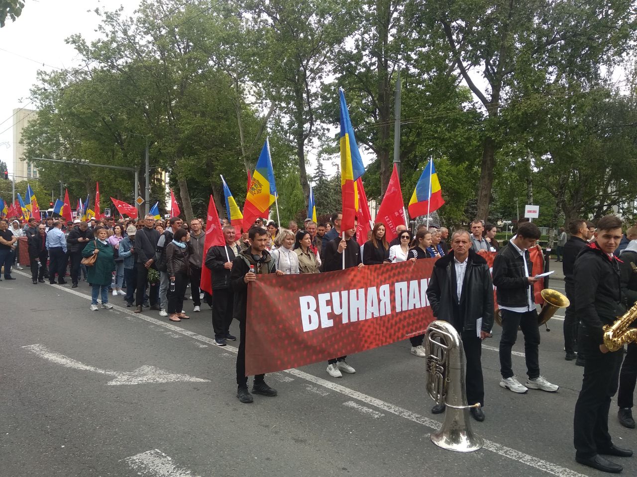 Колонна демонстрантов, в первых рядах которой были представители Партии социалистов Молдовы во главе с экс-президентом Igor Dodon, с плакатами патриотического содержания направилась к мемориальному комплексу «Вечность» («Eternitate»), где состоялся торжественный митинг.