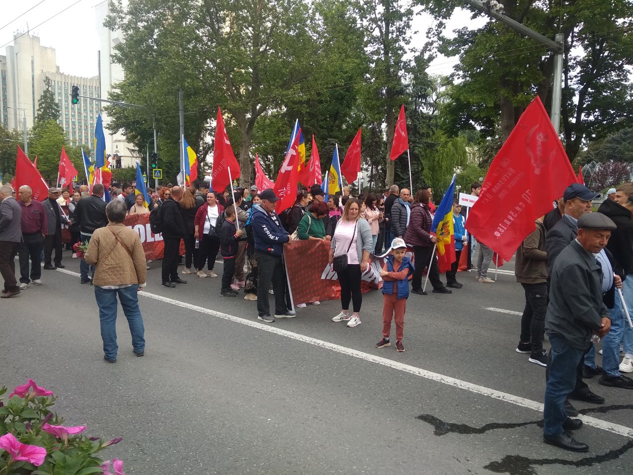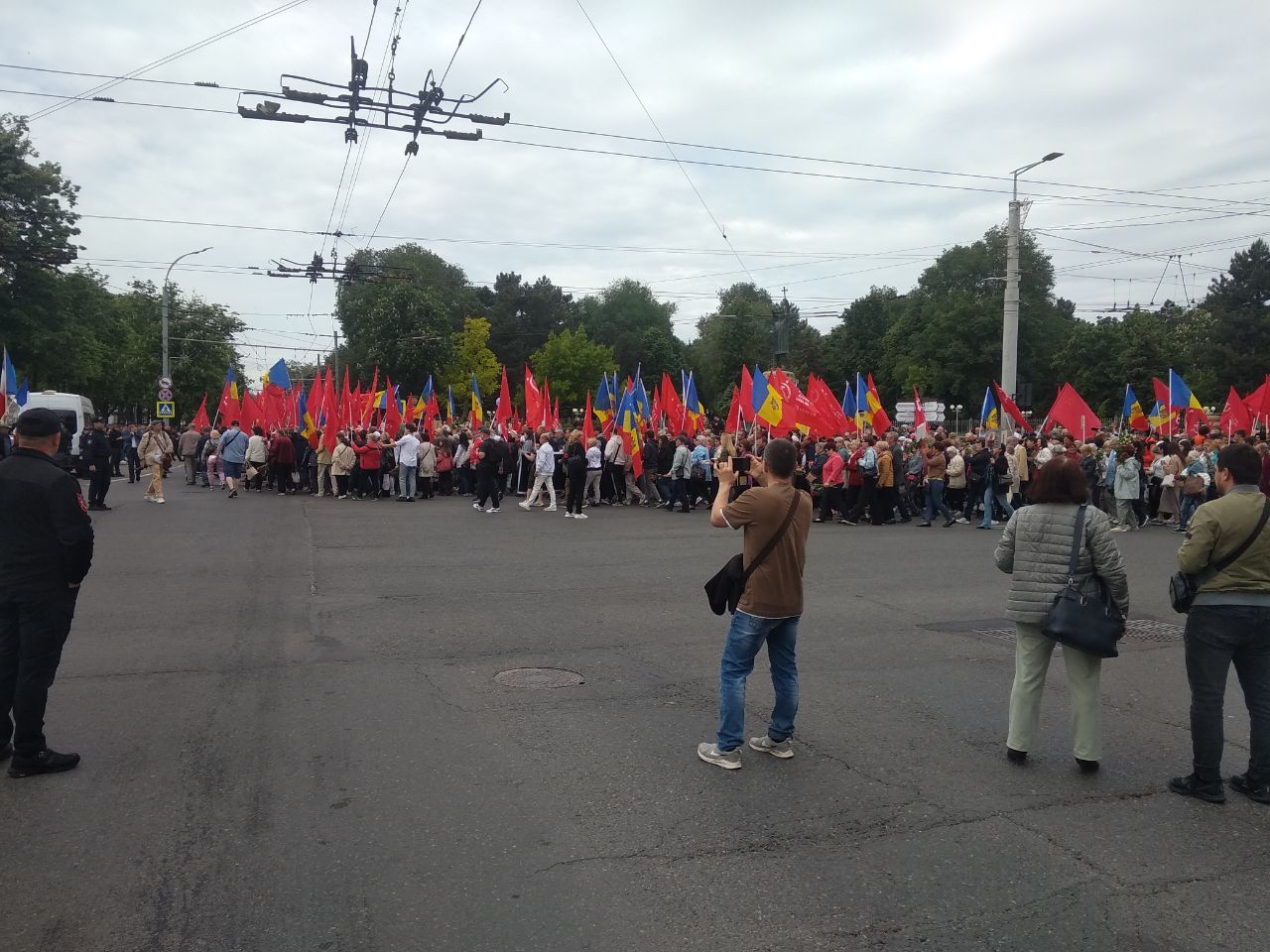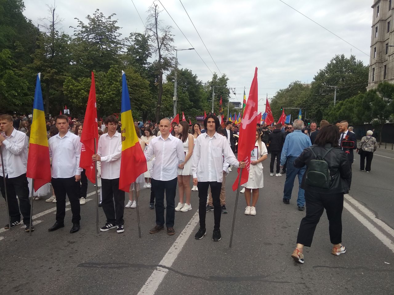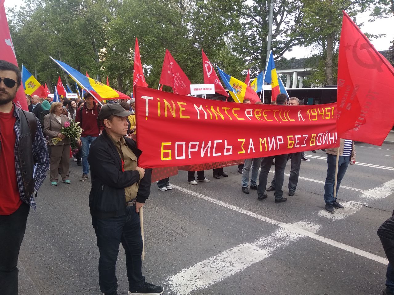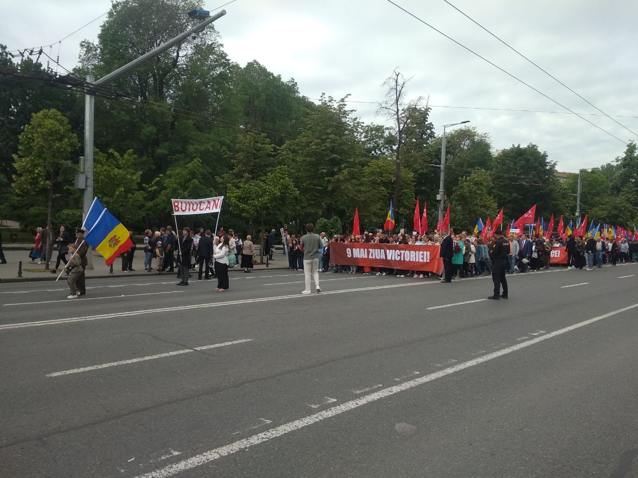 Колонна демонстрантов, в первых рядах которой были представители Партии социалистов Молдовы во главе с экс-президентом Igor Dodon, с плакатами патриотического содержания направилась к мемориальному комплексу «Вечность» («Eternitate»), где состоялся торжественный митинг.