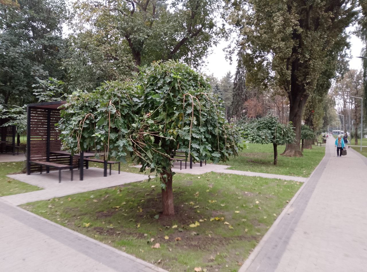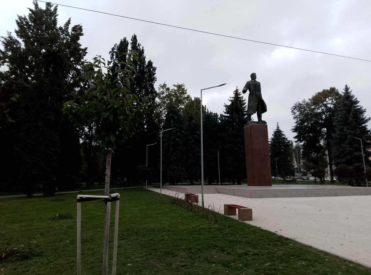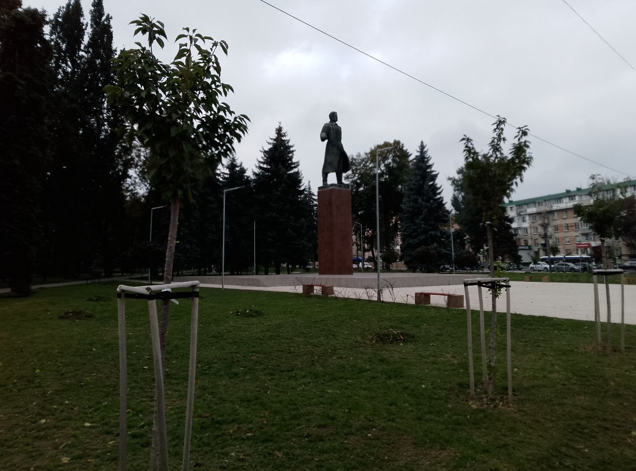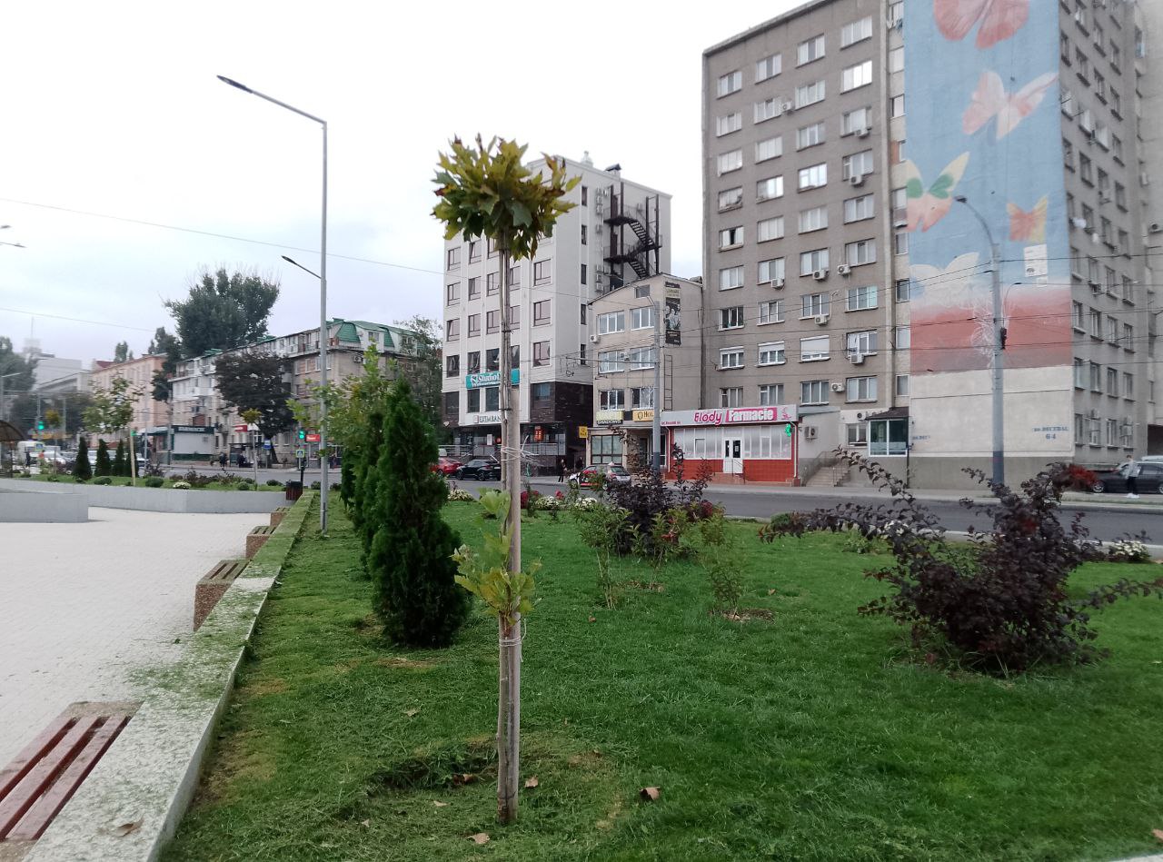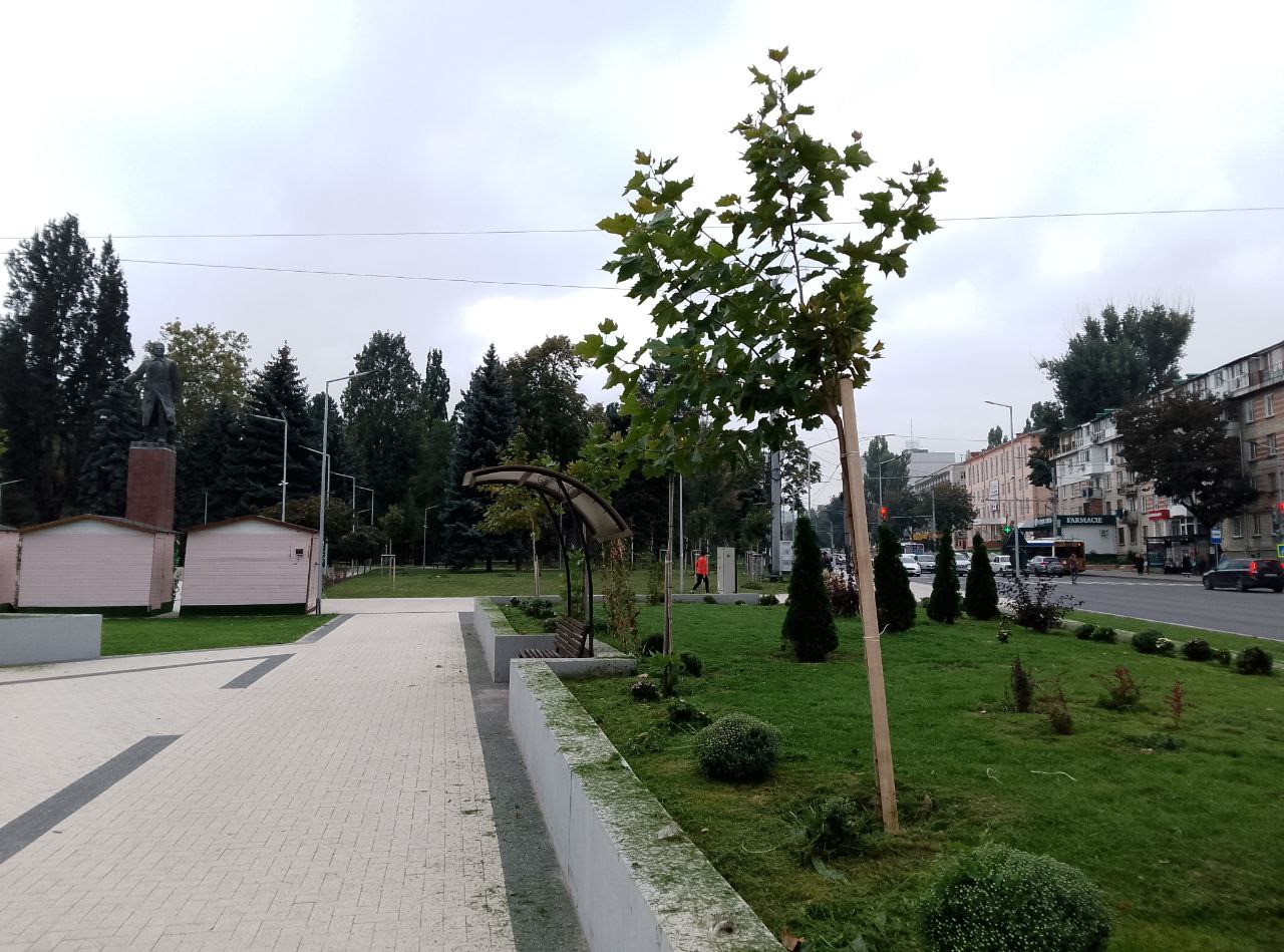 Последним штрихом реконструкции площади стало окончание благоустройства зелёной территории, в рамках которой работники коммунальных служб высадили молодые деревца клёна и дуба.
